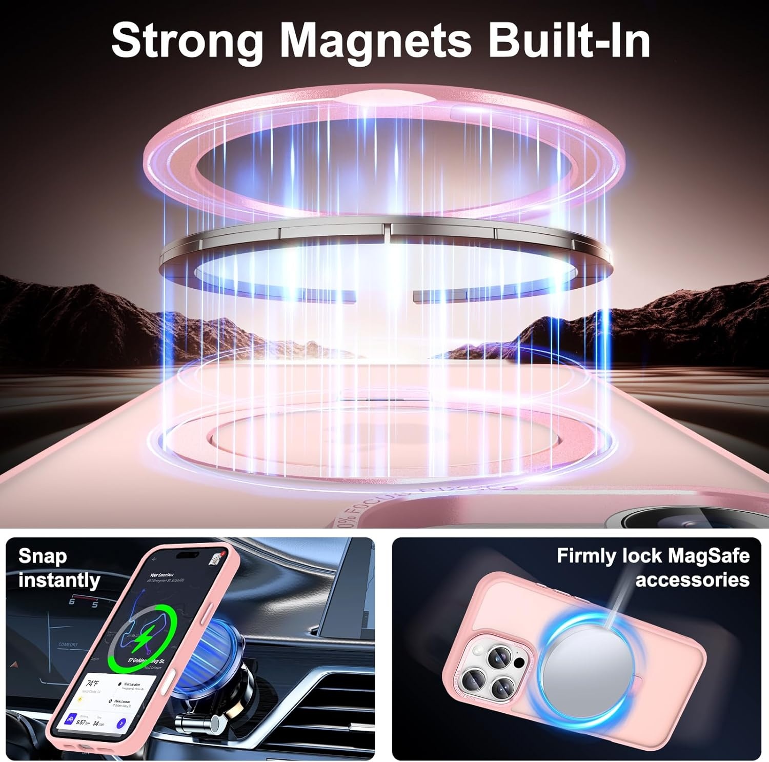 Dankzij krachtige ingebouwde magneten is deze hoes volledig MagSafe-compatibel, wat zorgt voor perfecte aansluiting met MagSafe-accessoires zoals draadloze opladers, autohouders en kaartportemonnees. Je iPhone 16 Pro blijft stevig op zijn plek – zonder verschuiven of onderbrekingen.