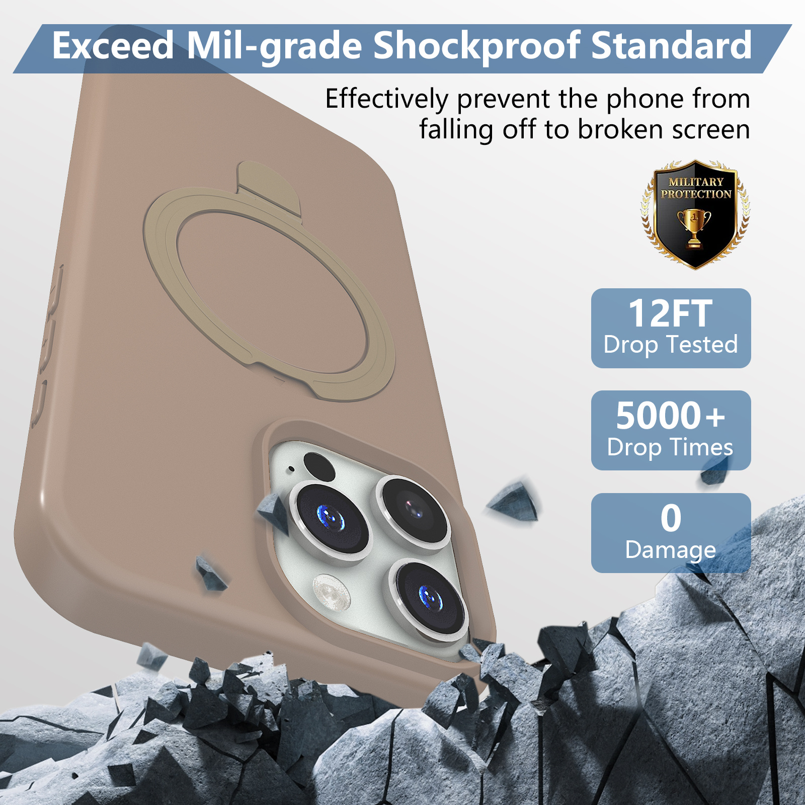 De geïntegreerde ringstandaard voegt extra gebruiksgemak toe. De ring is draaibaar en kan worden gebruikt als standaard in zowel verticale als horizontale positie. Ideaal voor videobellen, het bekijken van video’s, scrollen of handsfree gebruik. Wanneer de ring niet wordt gebruikt, klapt deze netjes plat tegen de hoes aan, waardoor het slanke design behouden blijft.