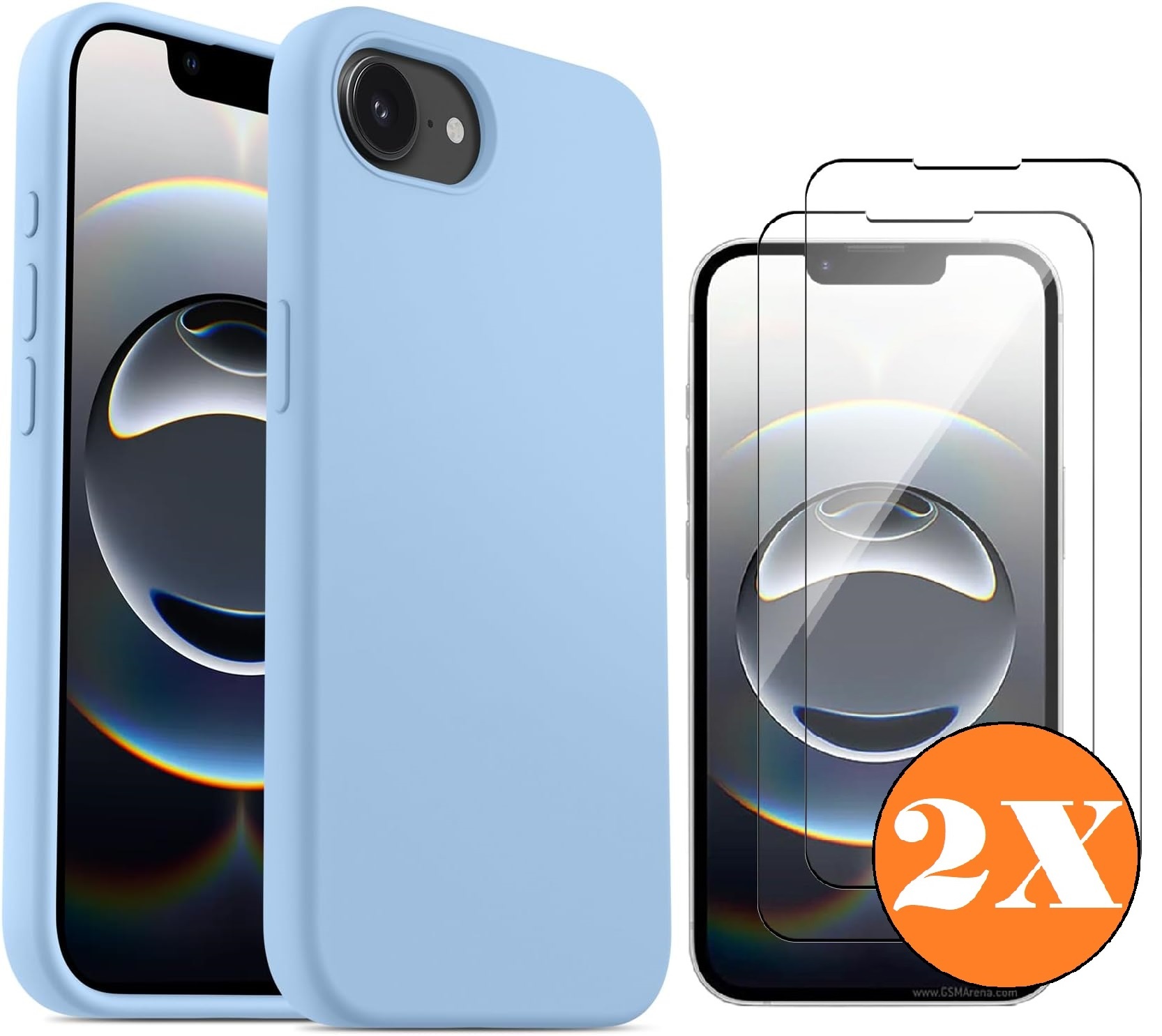 Hoesje geschikt voor iPhone 16e / iPhone 17e Hoesje siliconen Licht Blauw zacht siliconen hoesje TPU - met Screenprotector iPhone 16e / iPhone 17e Gehard Glas - 2 stuks