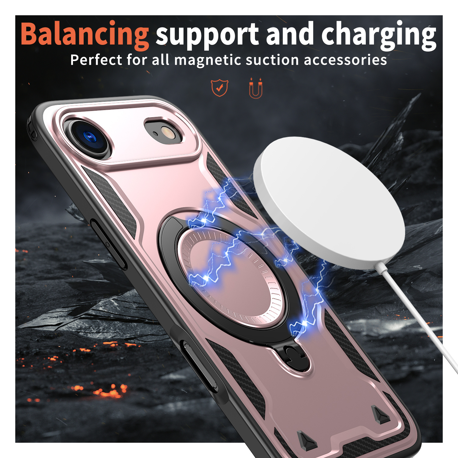 Hoesje Geschikt voor iPhone Air Hoesje Rose Goud - Geschikt voor MagSafe Armor Hoesje met Met Draaibare Ring Houder
