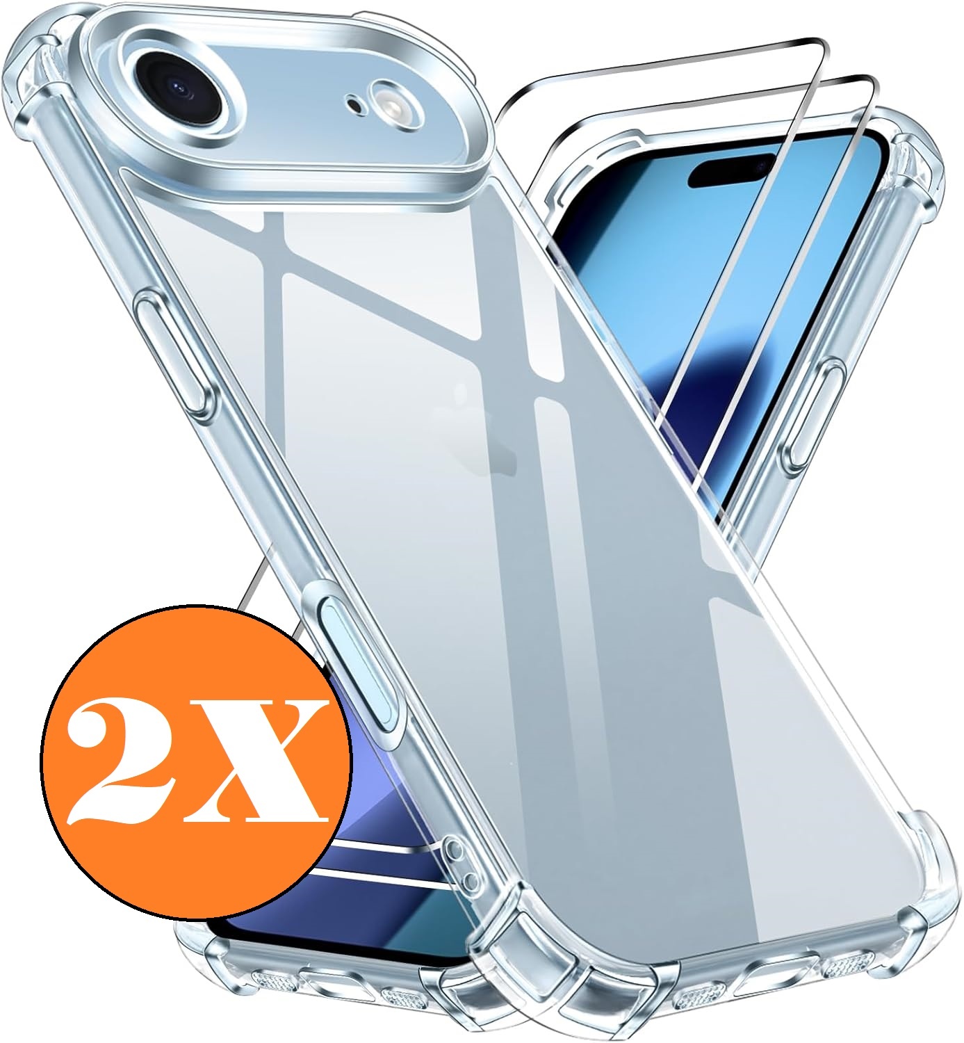 Hoesje Geschikt voor iPhone Air transparant Anti Shock - silicone hoesje met 2 Pack Screenprotector tempered glass