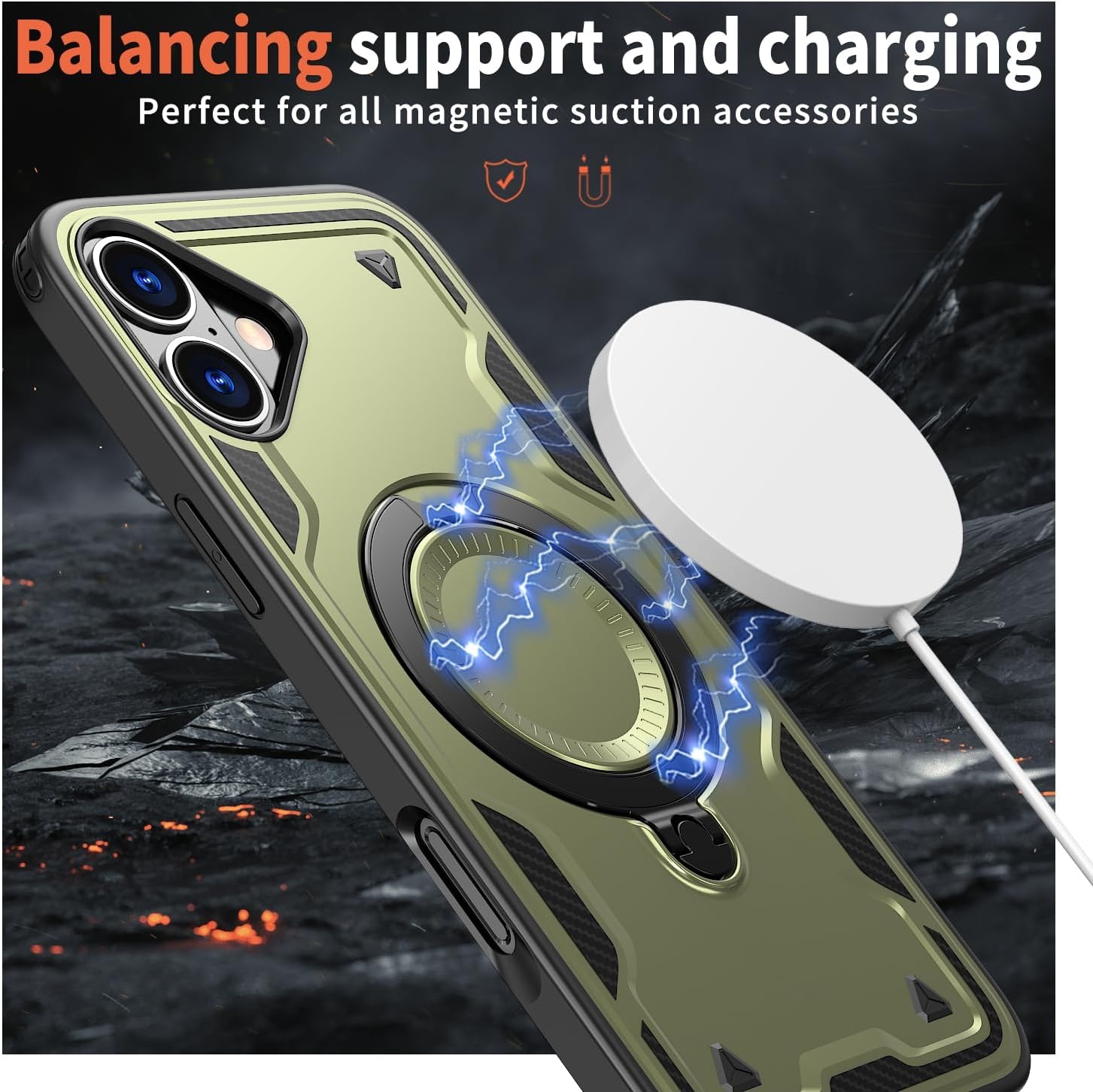 Hoesje Geschikt voor iPhone 17 Hoesje Groen - Geschikt voor MagSafe Armor Hoesje met Met Draaibare Ring Houder