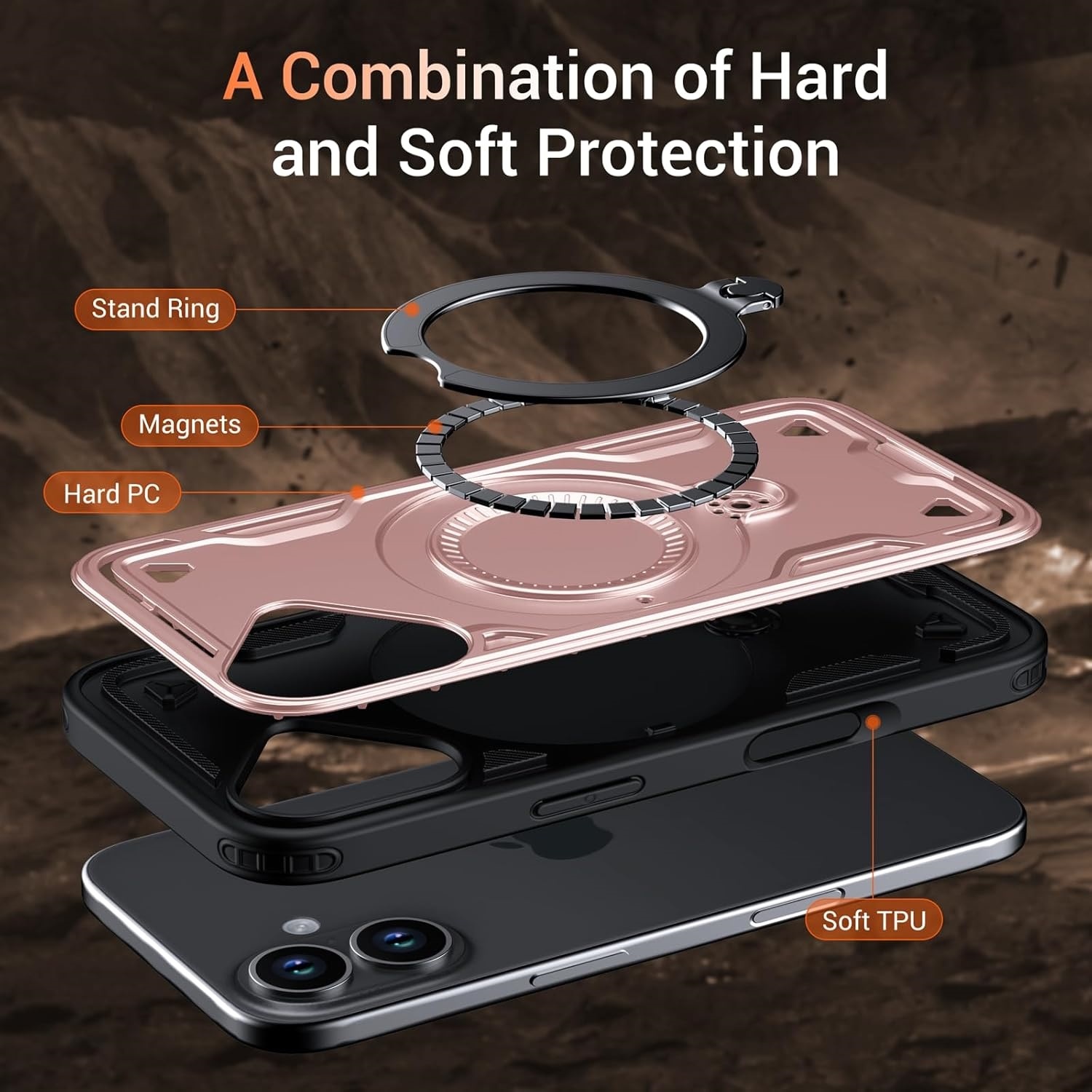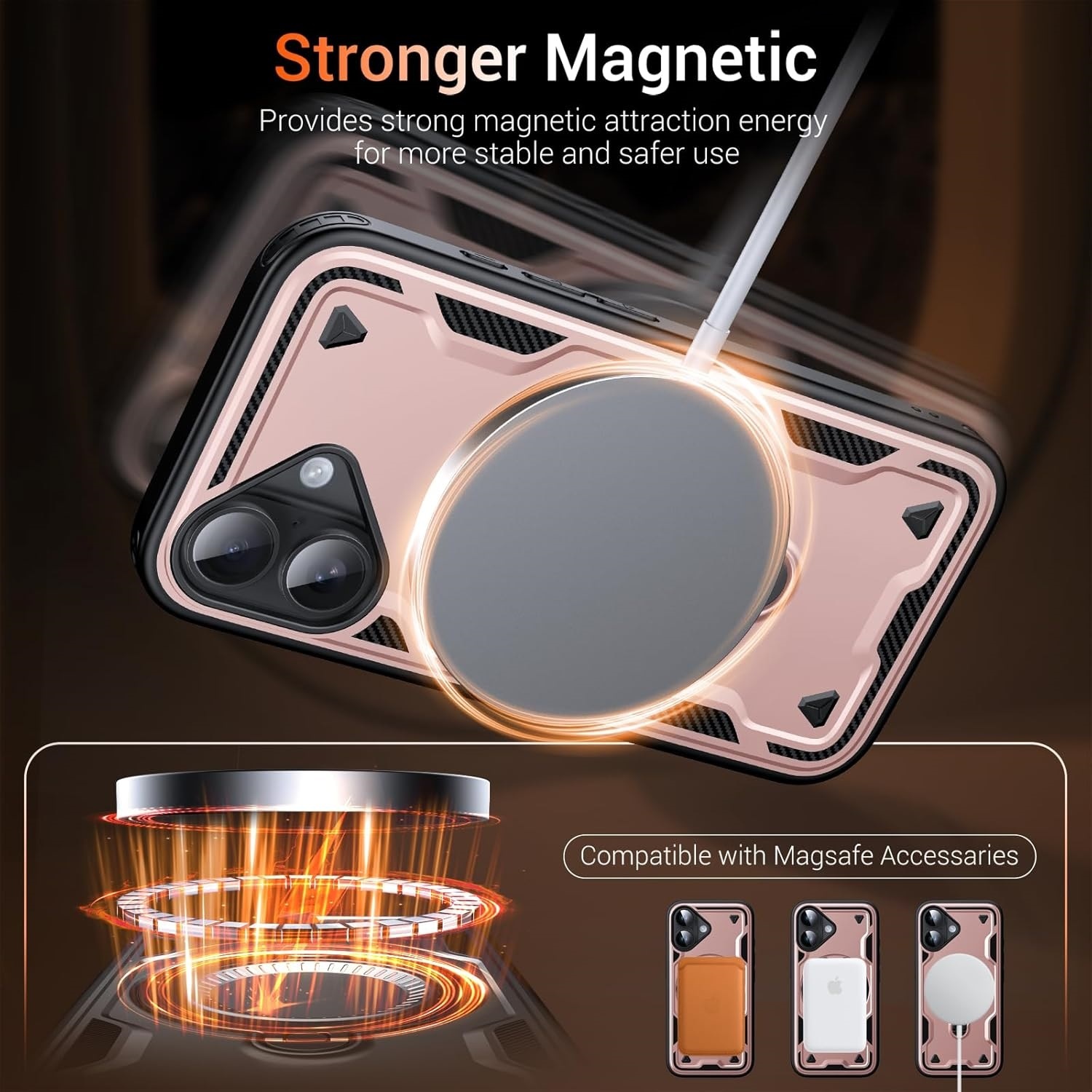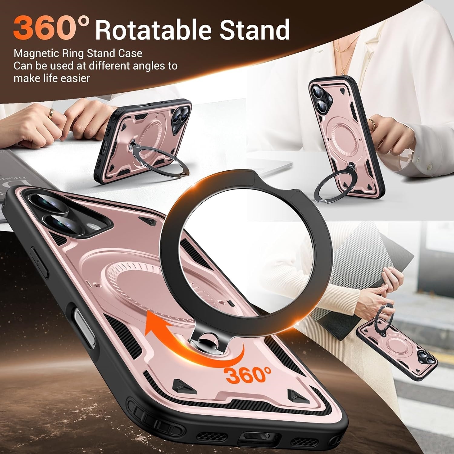 Hoesje Geschikt voor iPhone 17 Hoesje Rose Goud - Geschikt voor MagSafe Armor Hoesje met Met Draaibare Ring Houder