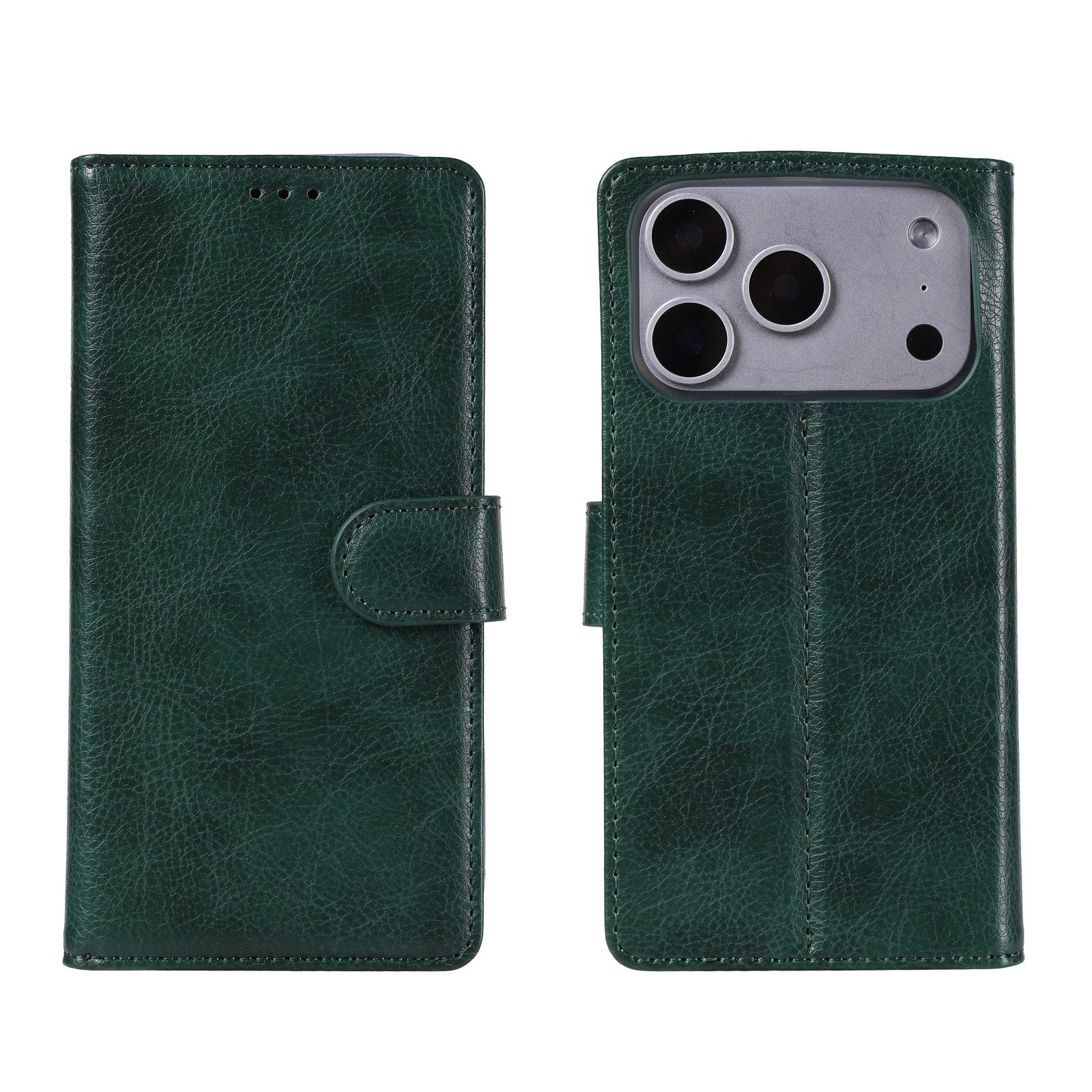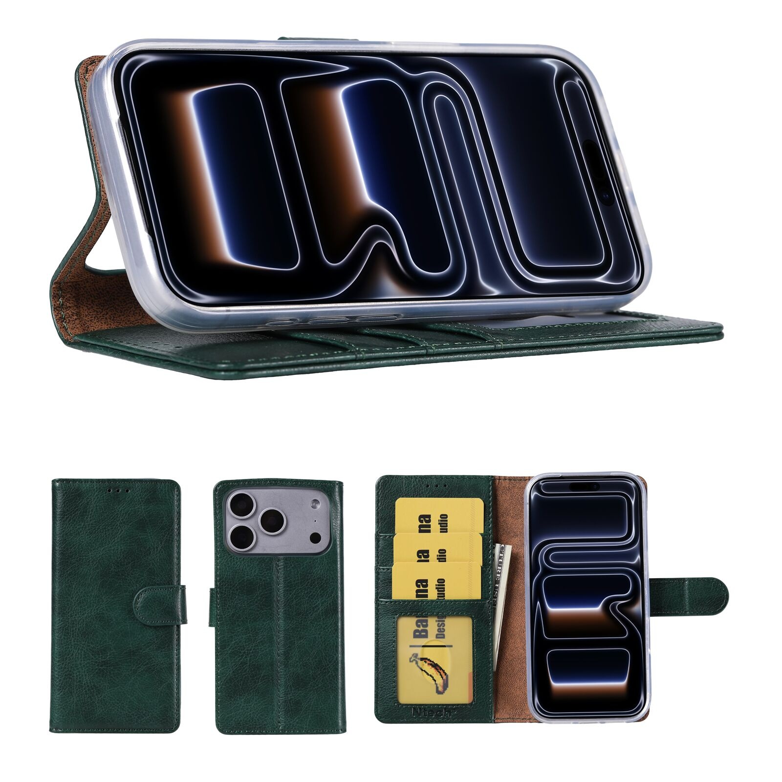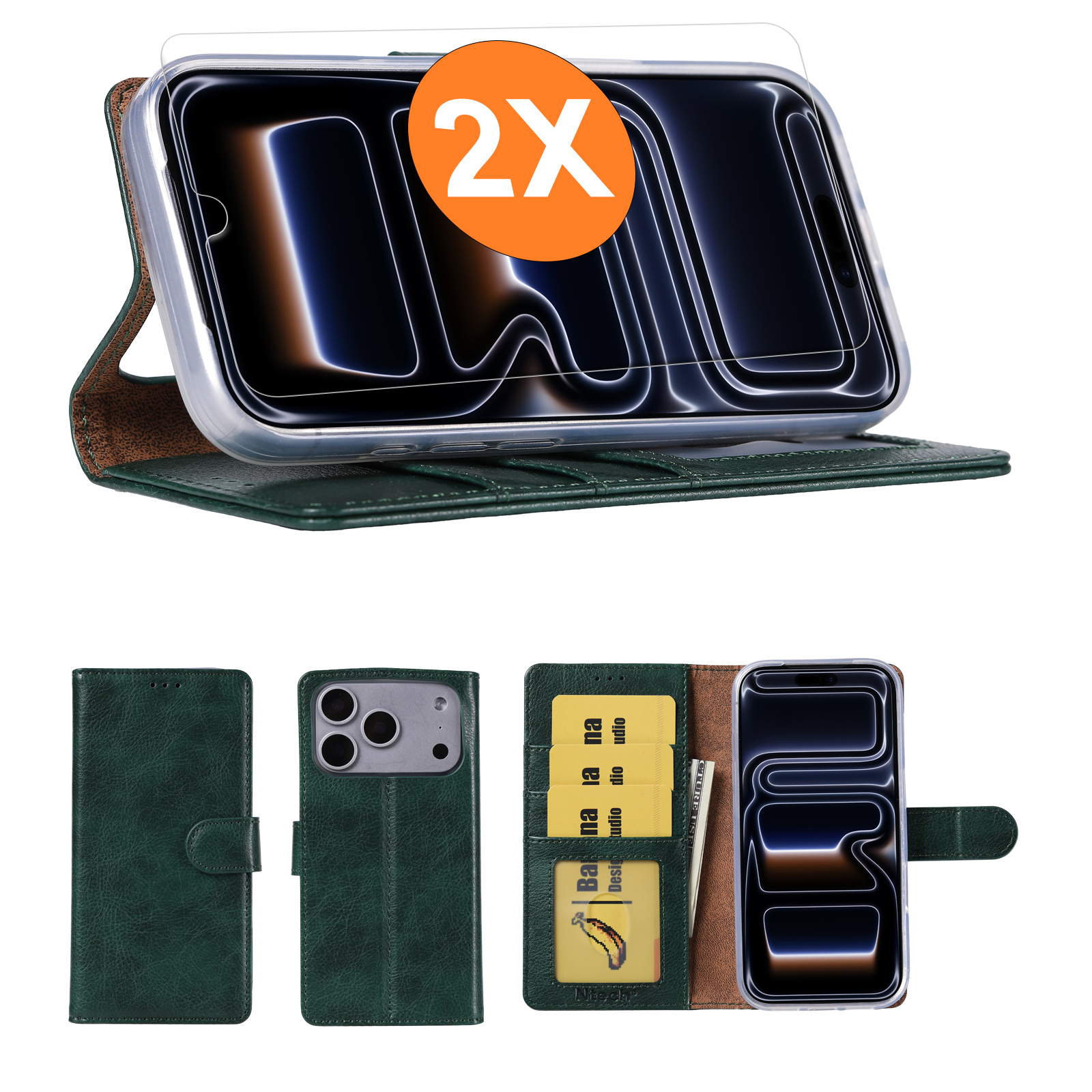 Hoesje geschikt voor iPhone 17 Pro hoesje Groen pasjeshouder telefoon hoes - Met screenprotector tempered glass voor iPhone 17 Pro - 2x
