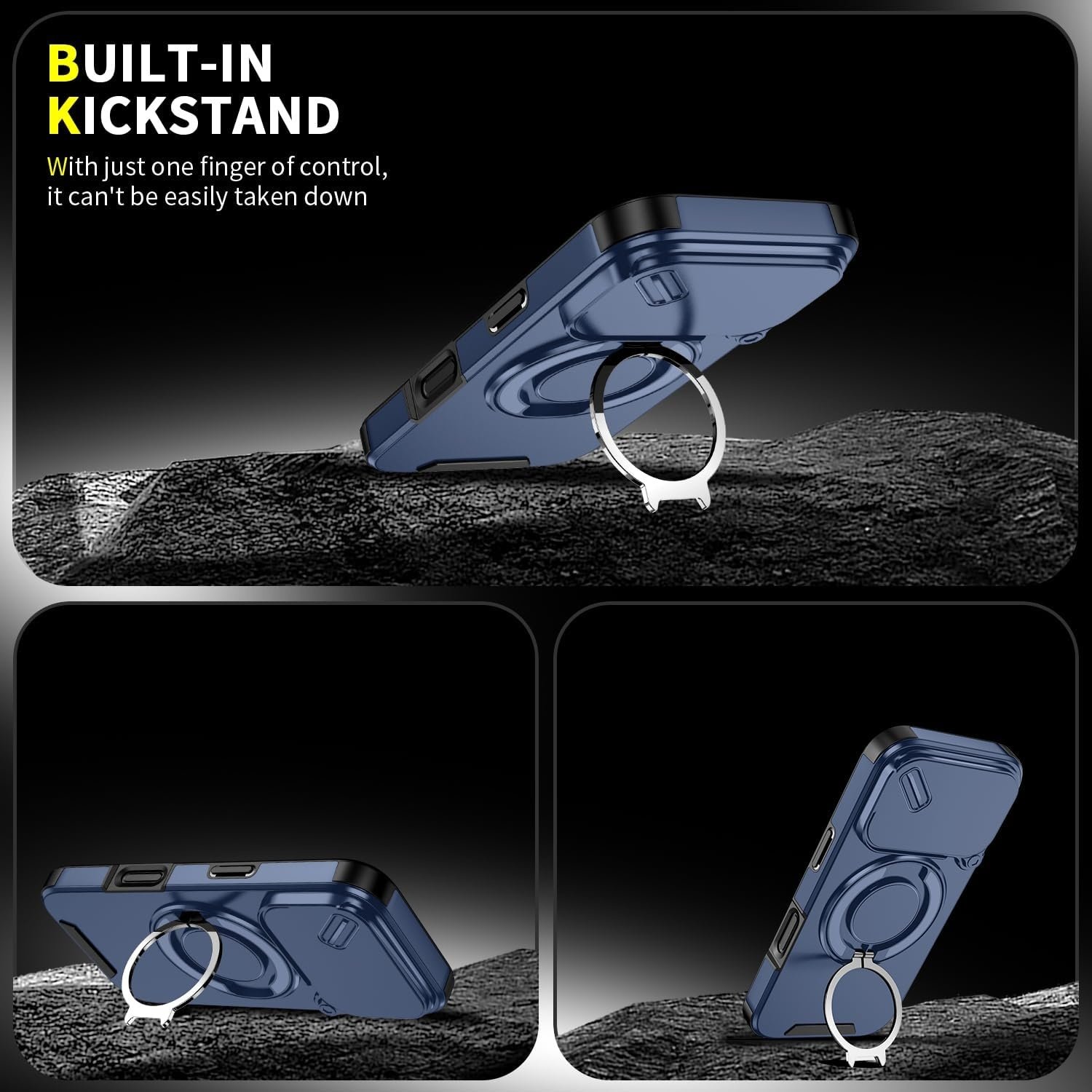 - De geïntegreerde roterende steun maakt het mogelijk om de kijkhoek van je telefoon gemakkelijk aan te passen voor handsfree weergave, of je nu video's kijkt, video belt of leest.