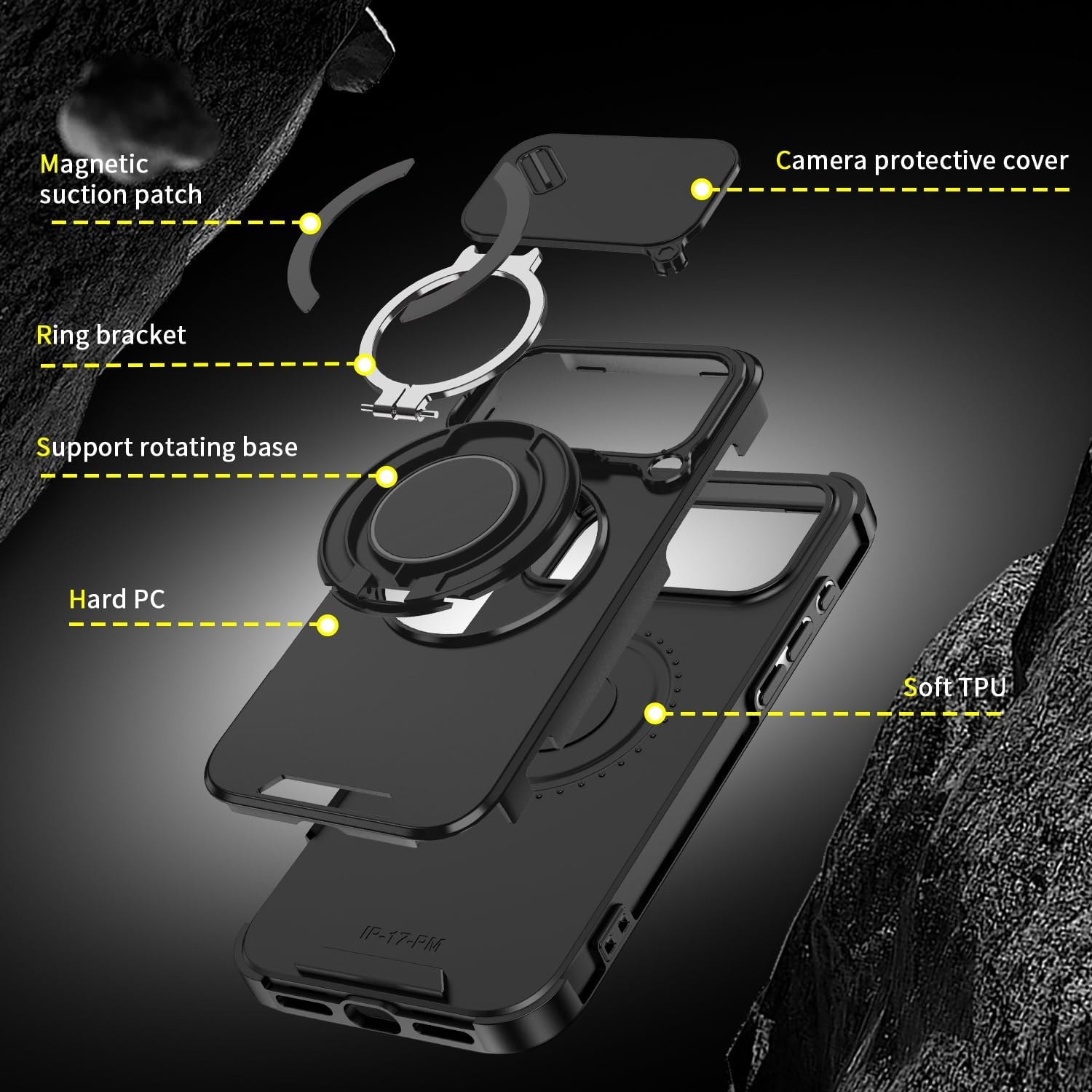 Hoesje Geschikt voor iPhone 17 Pro Max hoesje Zwart - Shock Hybrid Armor Hoes met Kickstand Ring en Camera Bescherming - Geschikt voor MagSafe