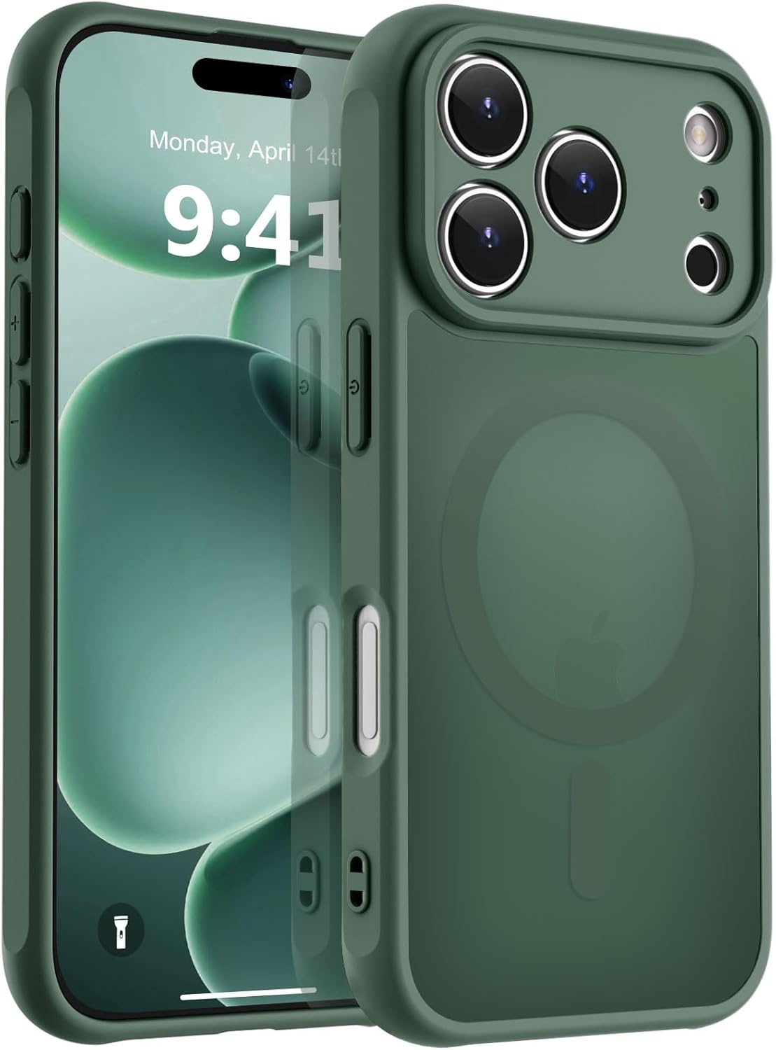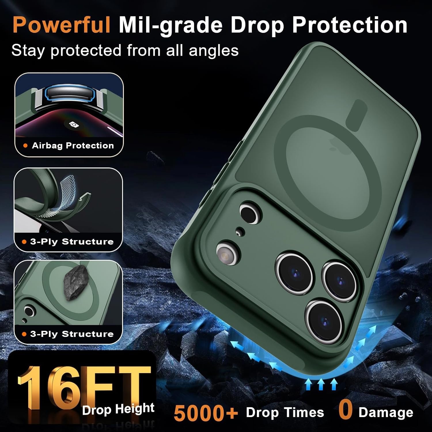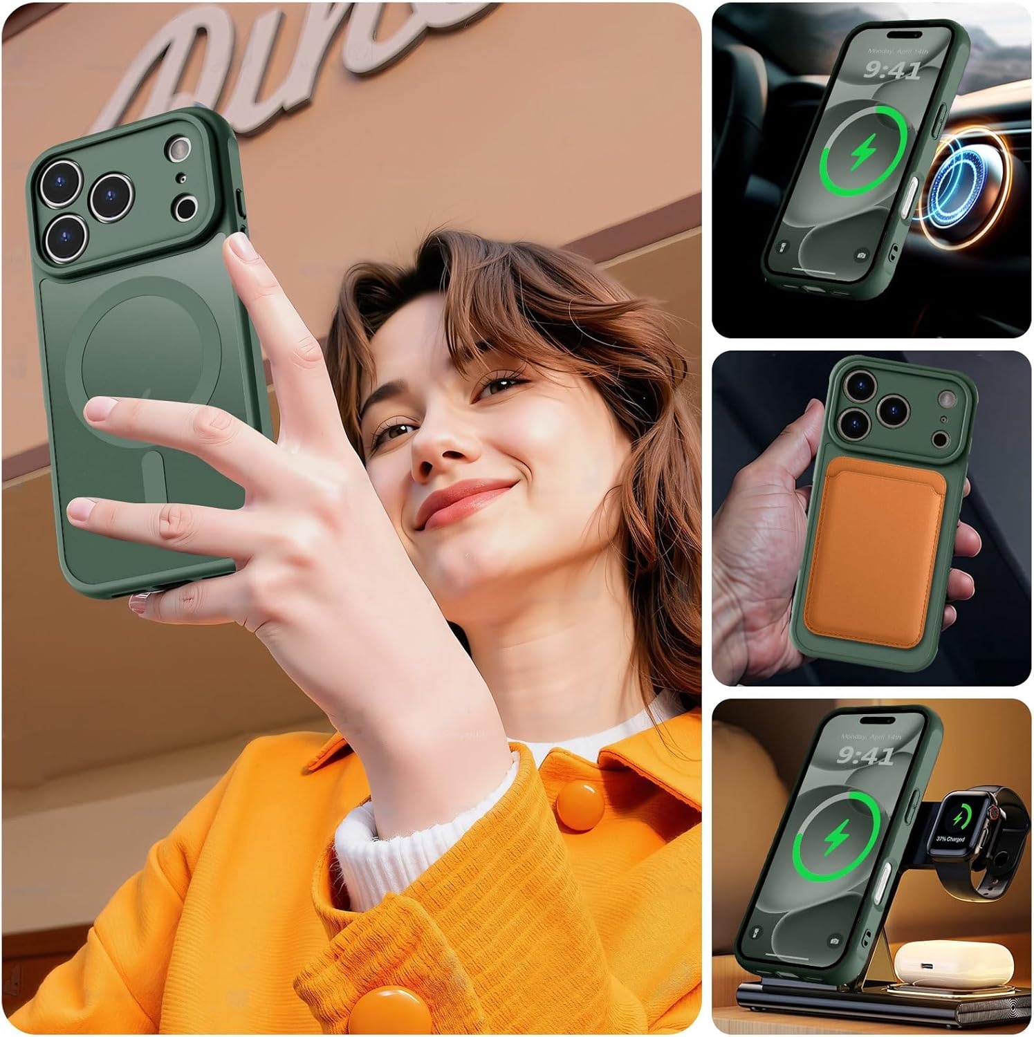 Hoesje Geschikt voor iPhone 17 Pro Max Hoesje Pine Groen - Hoesje Geschikt voor MagSafe iPhone 17 Pro Max - Shockproof Back Cover met Lens beschermer - Phonecompleet.nl