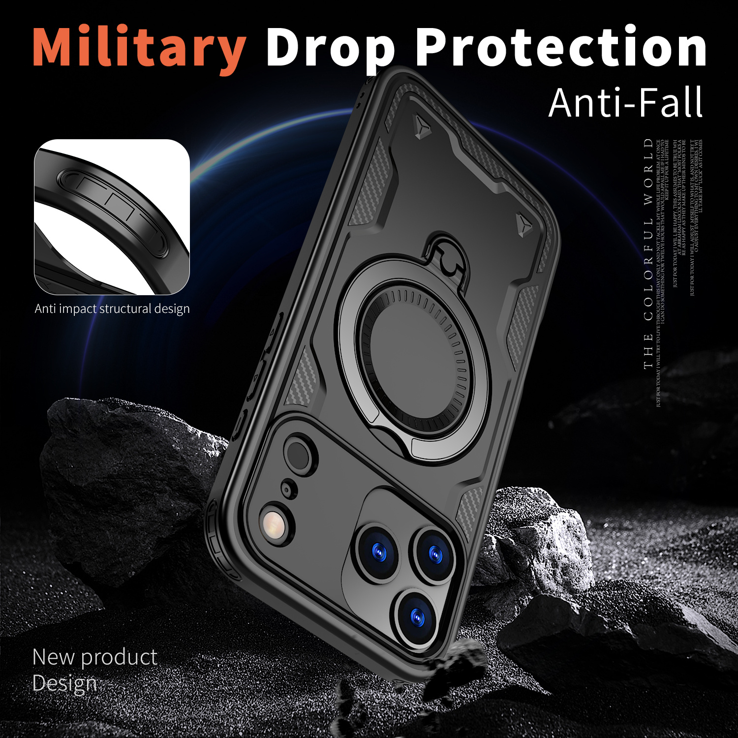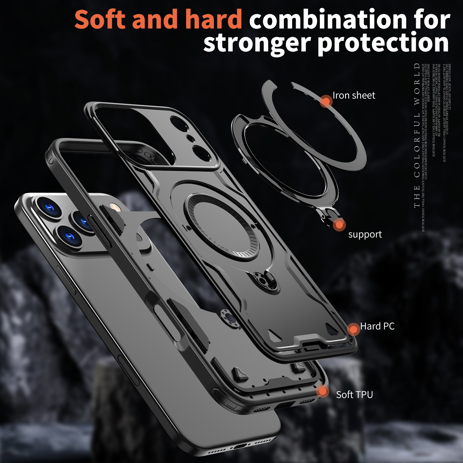 Hoesje Geschikt voor iPhone 17 Pro Max Hoesje Zwart - Geschikt voor MagSafe Armor Hoesje met Met Draaibare Ring Houder