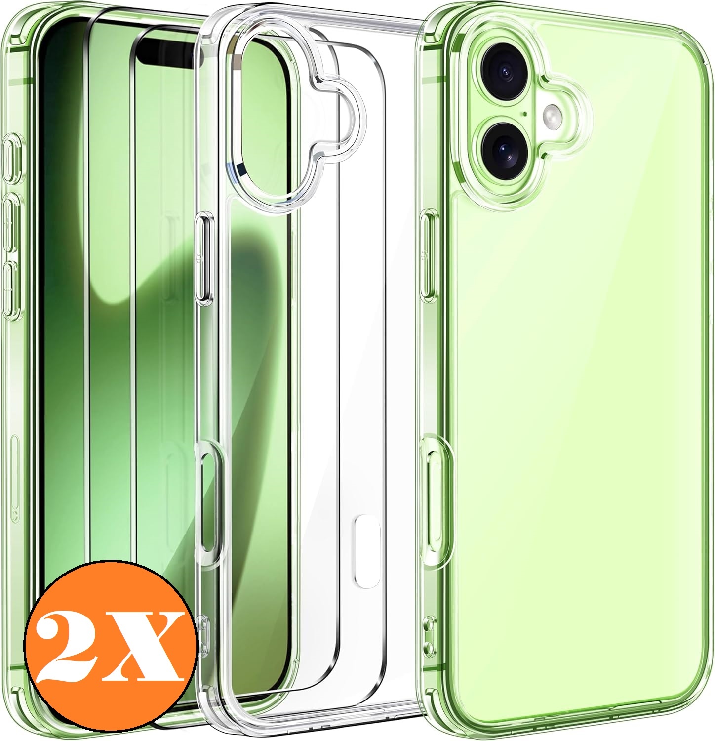 Hoesje Geschikt voor iPhone 17 transparant Anti Shock - silicone hoesje met 2 Pack Screenprotector tempered glass