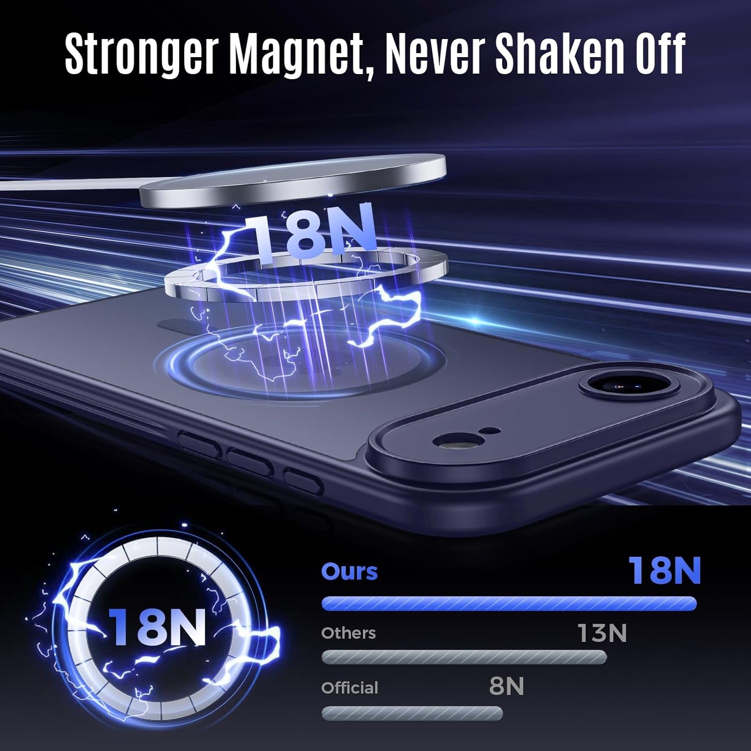Bescherm je iPhone Air in stijl met deze premium MagSafe-compatibele bumper case, ontworpen voor gebruikers die zowel functionaliteit als een moderne look waarderen. De matte frosted achterkant is bestand tegen vingerafdrukken en krassen, terwijl de schokabsorberende bumperranden bescherming bieden tegen stoten en vallen. De ingebouwde cameralensbeschermer houdt je lenzen schoon en veilig, zonder invloed op de beeldkwaliteit – perfect voor haarscherpe foto’s, altijd en overal.
