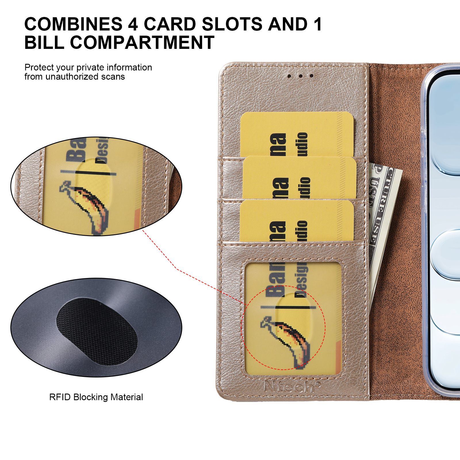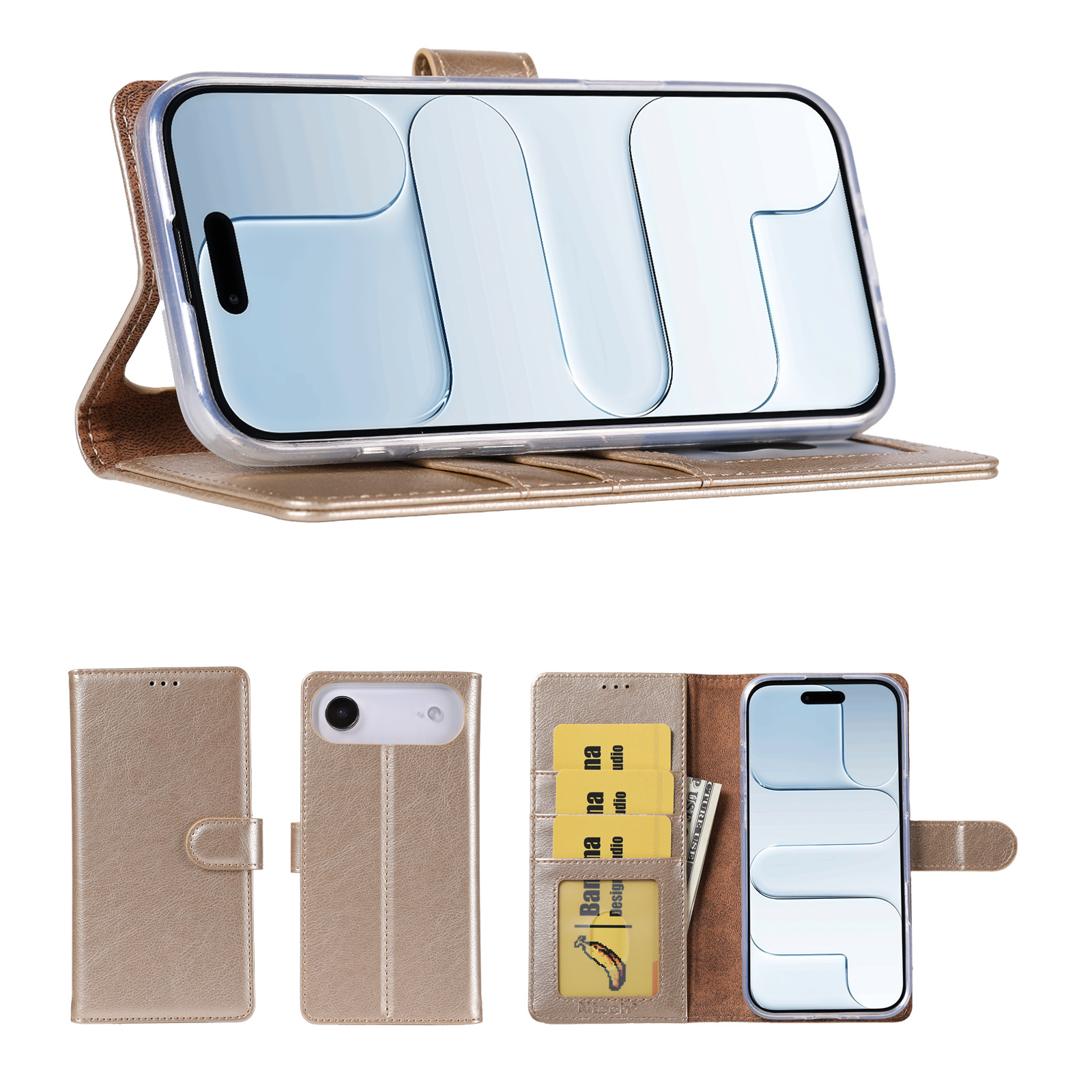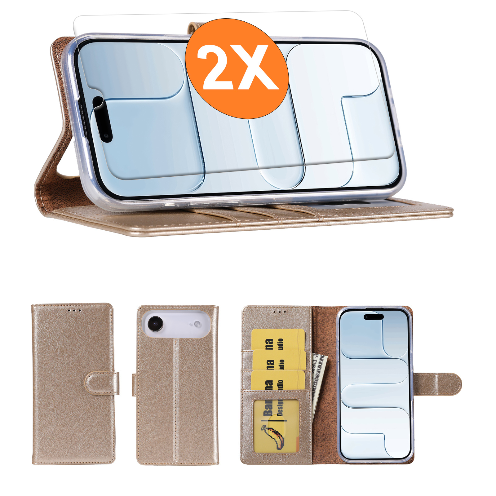 Hoesje geschikt voor iPhone Air hoesje Goud pasjeshouder telefoon hoes - Met screenprotector tempered glass voor iPhone Air - 2x