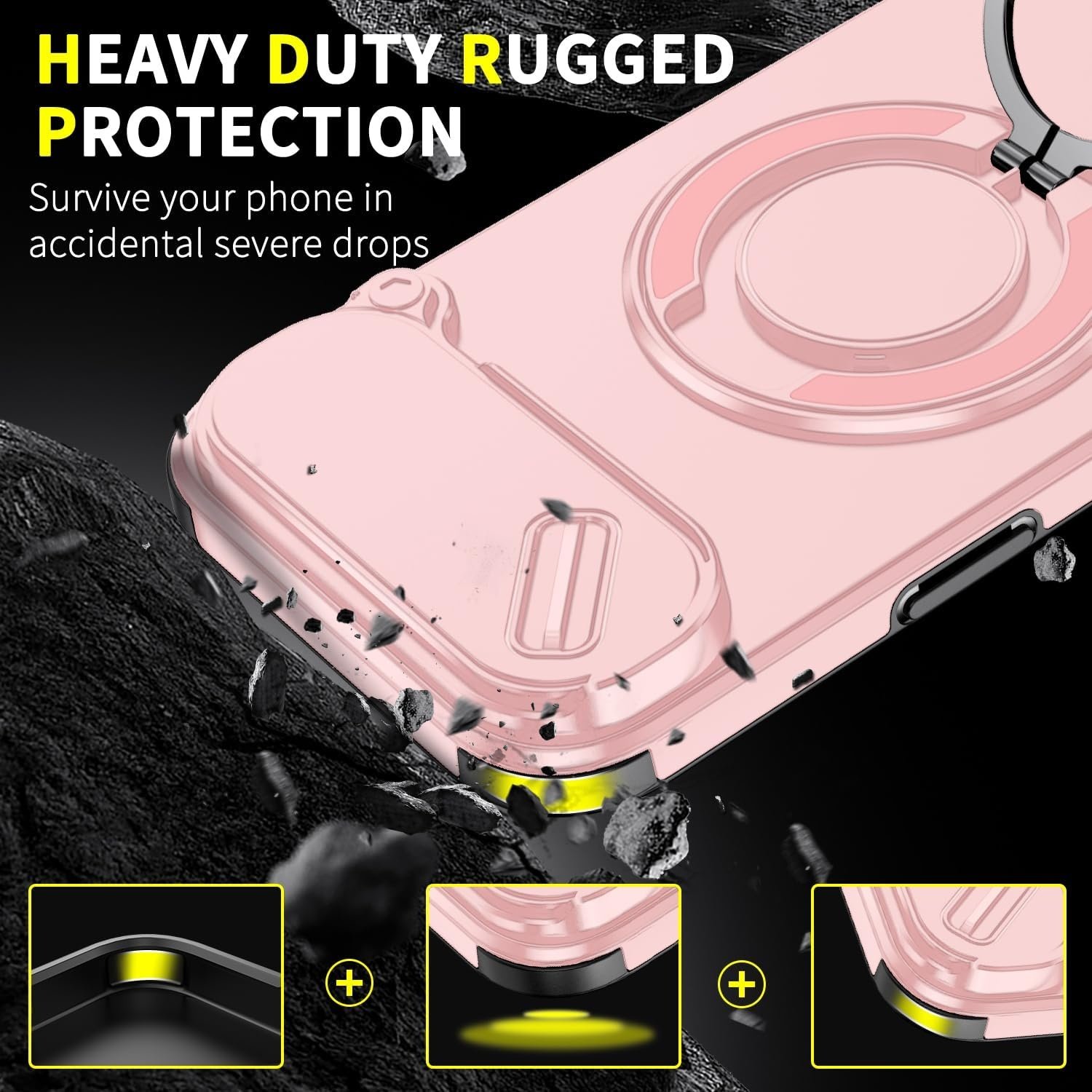 Hoesje Geschikt voor iPhone Air hoesje Rose Goud - Shock Hybrid Armor Hoes met Kickstand Ring en Camera Bescherming - Geschikt voor MagSafe