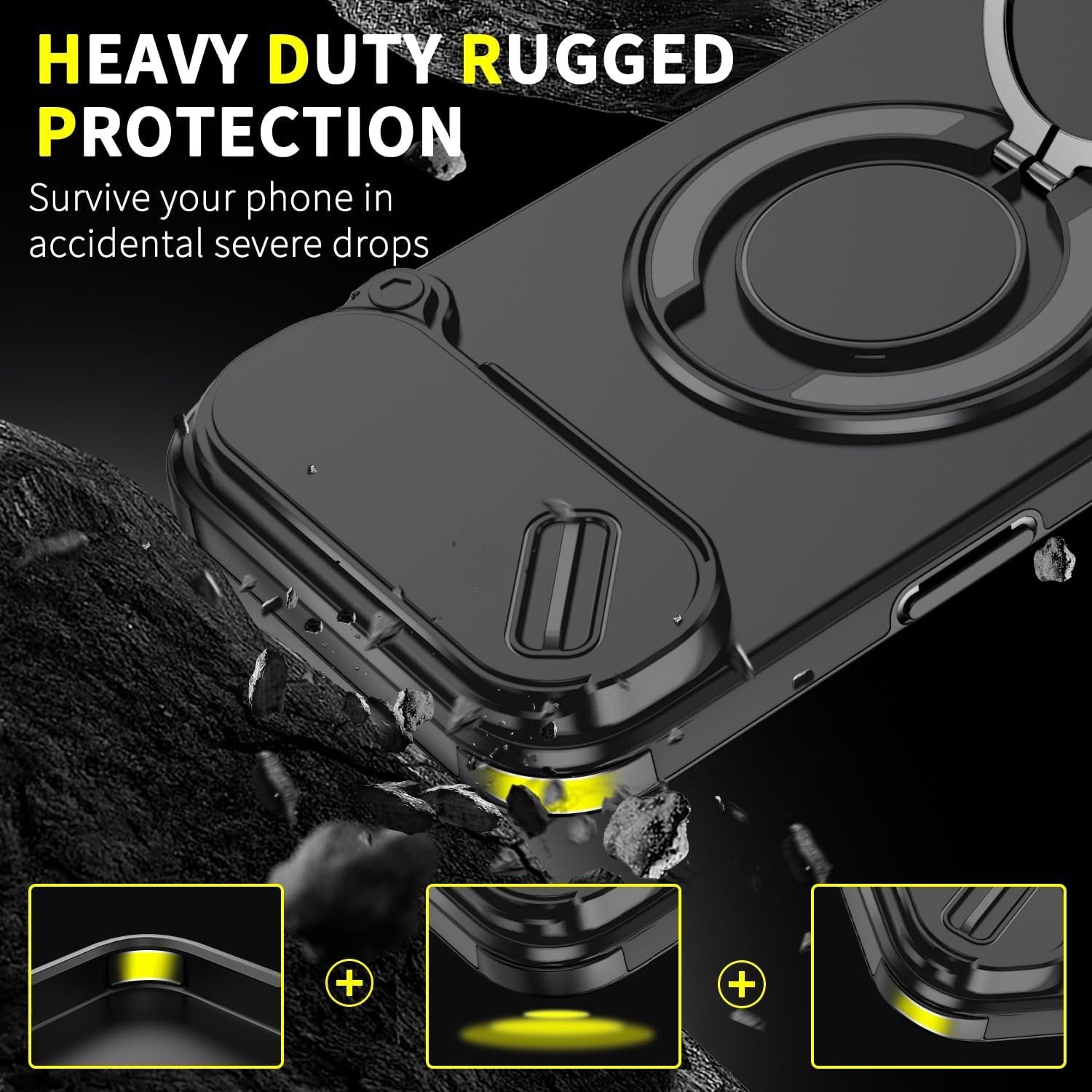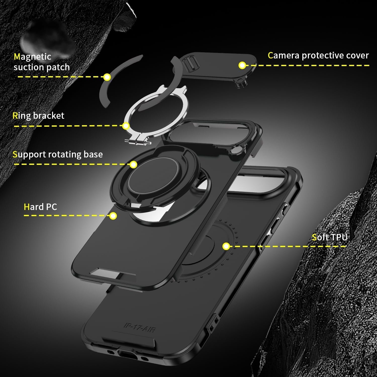 Hoesje Geschikt voor iPhone Air hoesje Zwart - Shock Hybrid Armor Hoes met Kickstand Ring en Camera Bescherming - Geschikt voor MagSafe