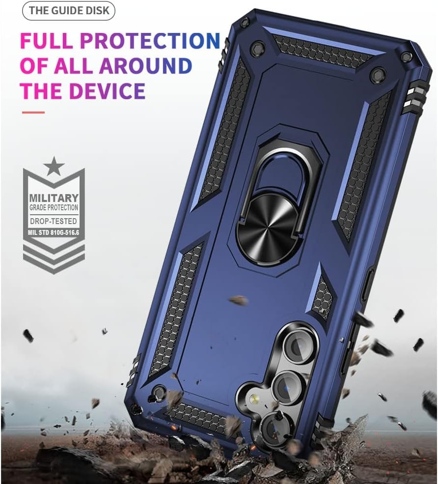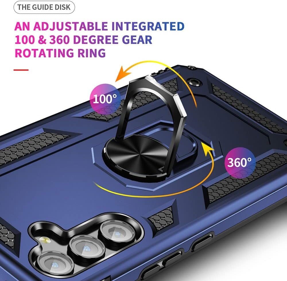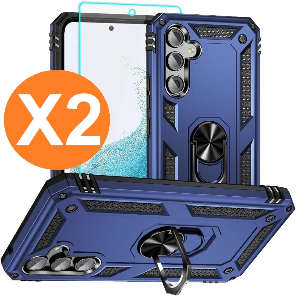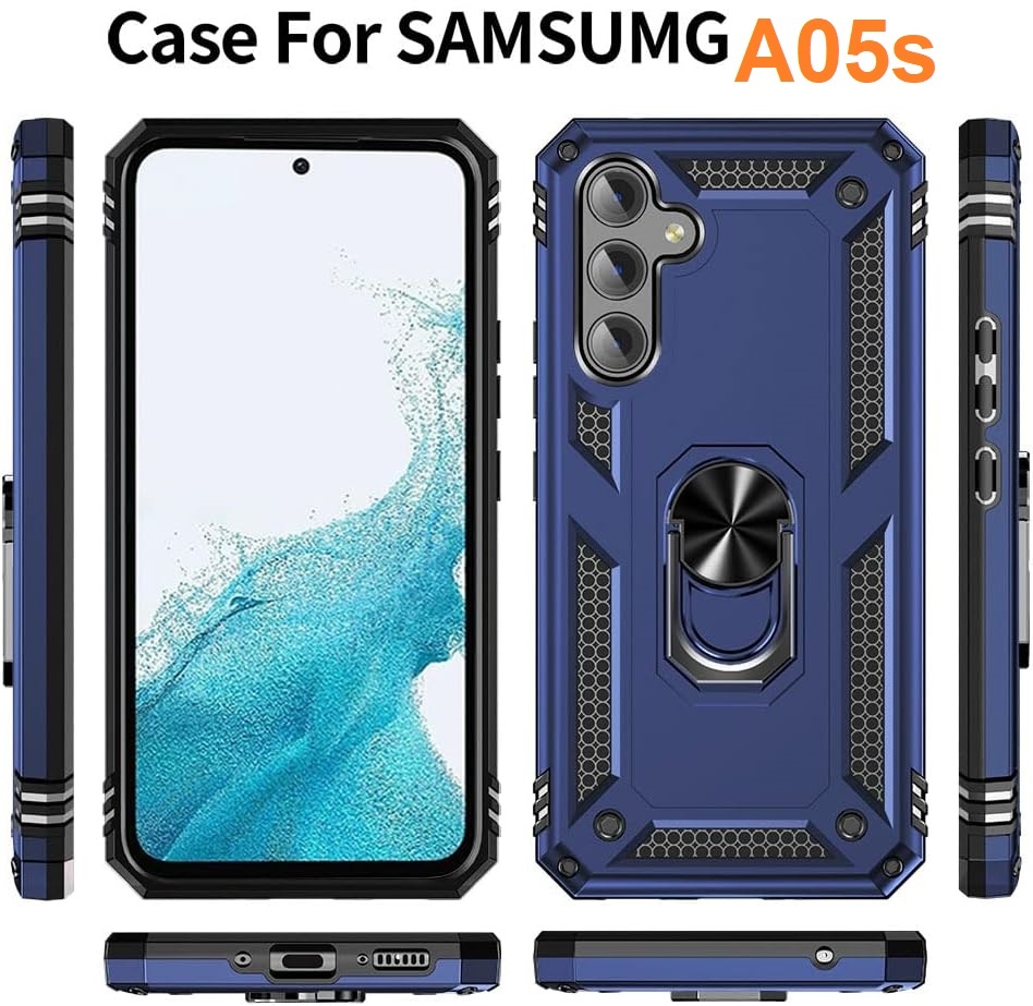 Hoesje Geschikt voor Samsung A05s Hoesje Blauw Anti-Shock Hybrid Armor hoesje Met Draaibare Ring Houder - Samsung Galaxy A05s Screenprotector 2 pack