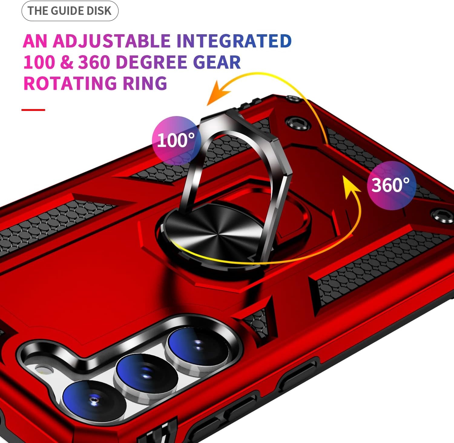 Hoesje Geschikt voor Samsung A05s Hoesje Rood Anti-Shock Hybrid Armor hoesje Met Draaibare Ring Houder - Samsung Galaxy A05s Screenprotector 2 pack