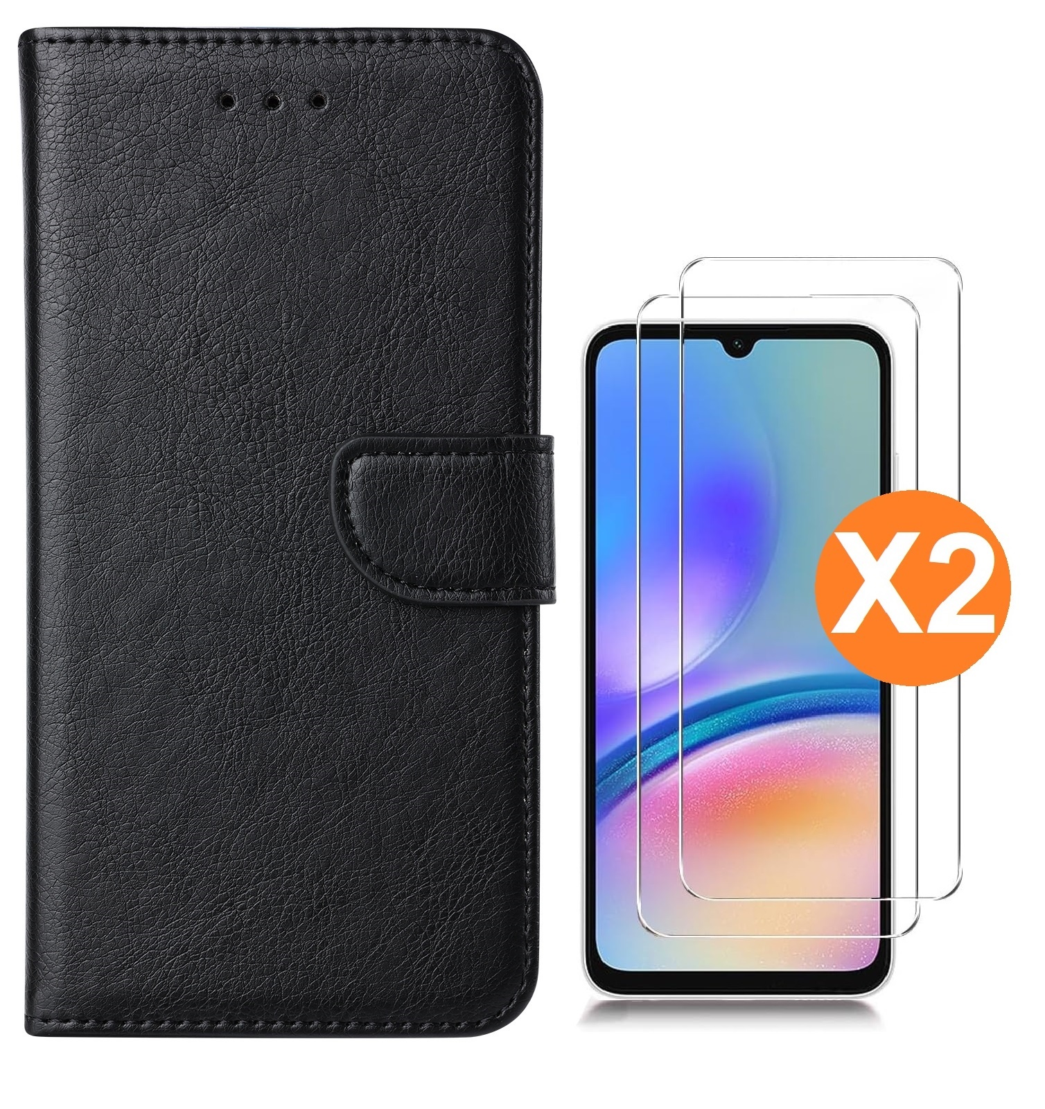 Hoesje geschikt voor Samsung Galaxy A05 bookcase Zwart - Met screenprotector tempered glass Galaxy A05 - 2x
