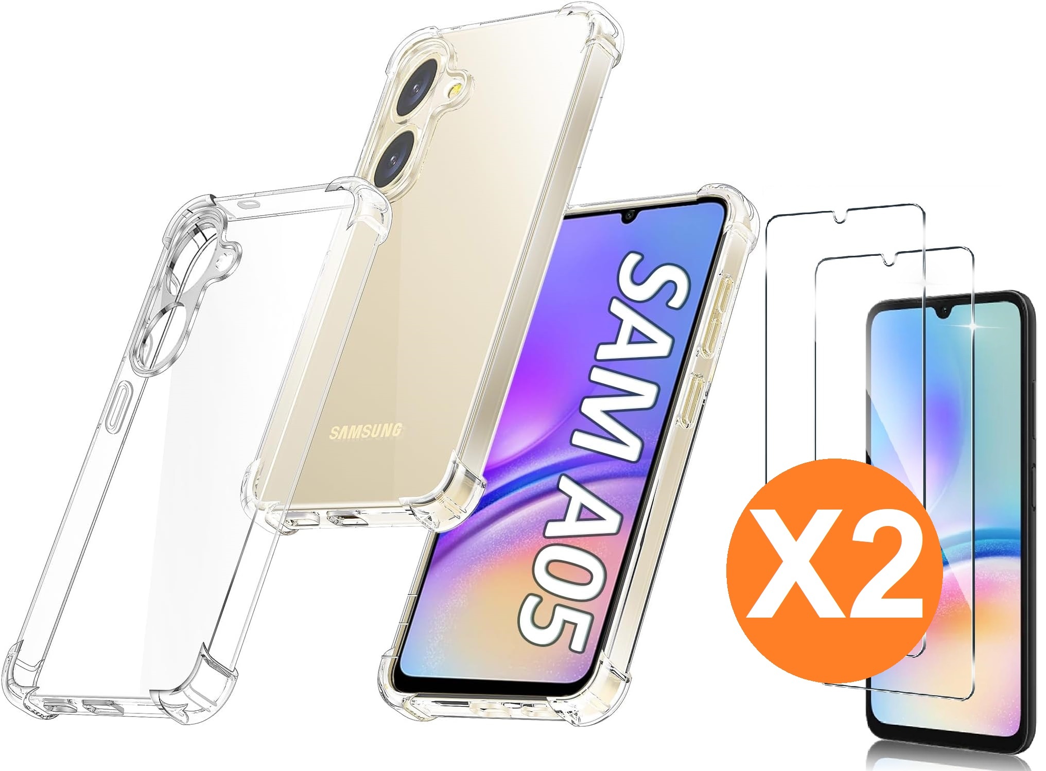 Bestel vandaag nog onze transparante siliconen hoesje en gehard glas screenprotectors set en bescherm je Samsung Galaxy A05 tegen onverwachte ongelukken!