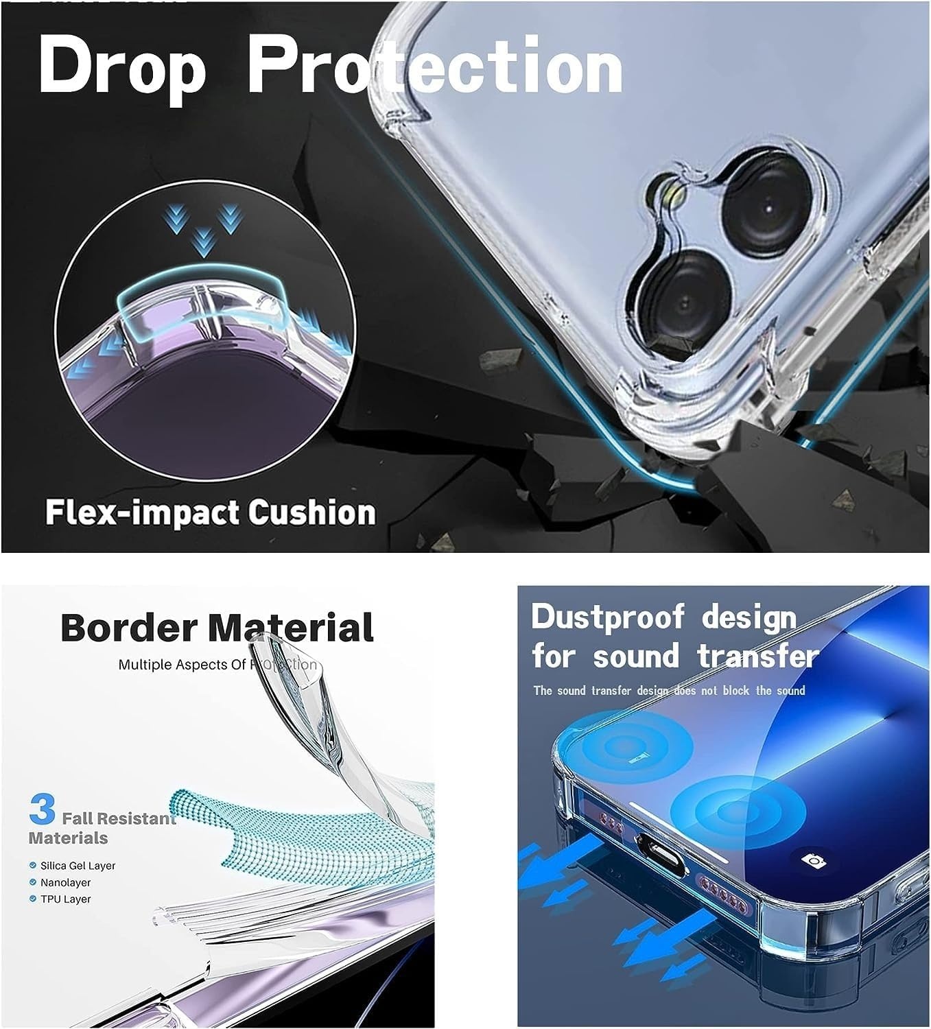 - Transparant siliconen hoesje dat schokken en stoten absorbeert, zodat je telefoon veilig is tegen onverwachte ongelukken.