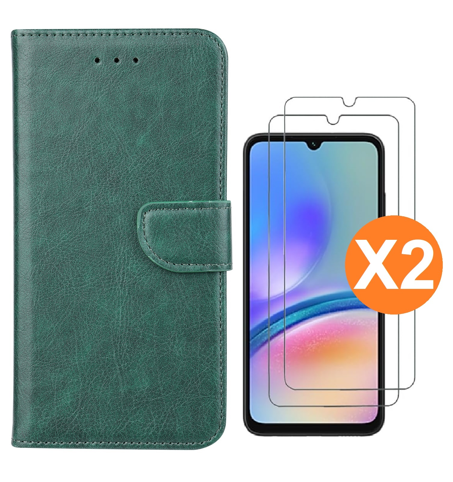 Hoesje geschikt voor Samsung Galaxy A05s bookcase Groen - Met screenprotector tempered glass Galaxy A05s - 2x