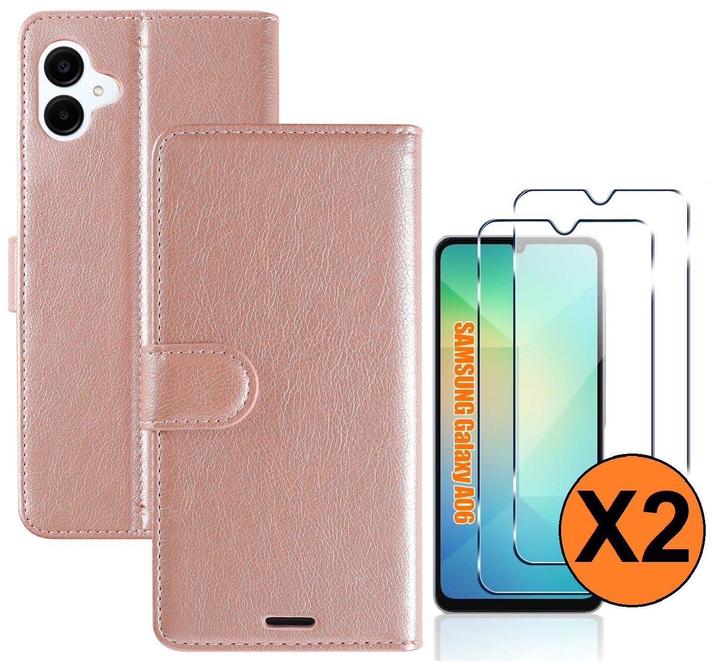 Hoesje geschikt voor Samsung Galaxy A06 hoesje bookcase Rose Goud - Met screenprotector tempered glass voor Galaxy A06 4G - 2x