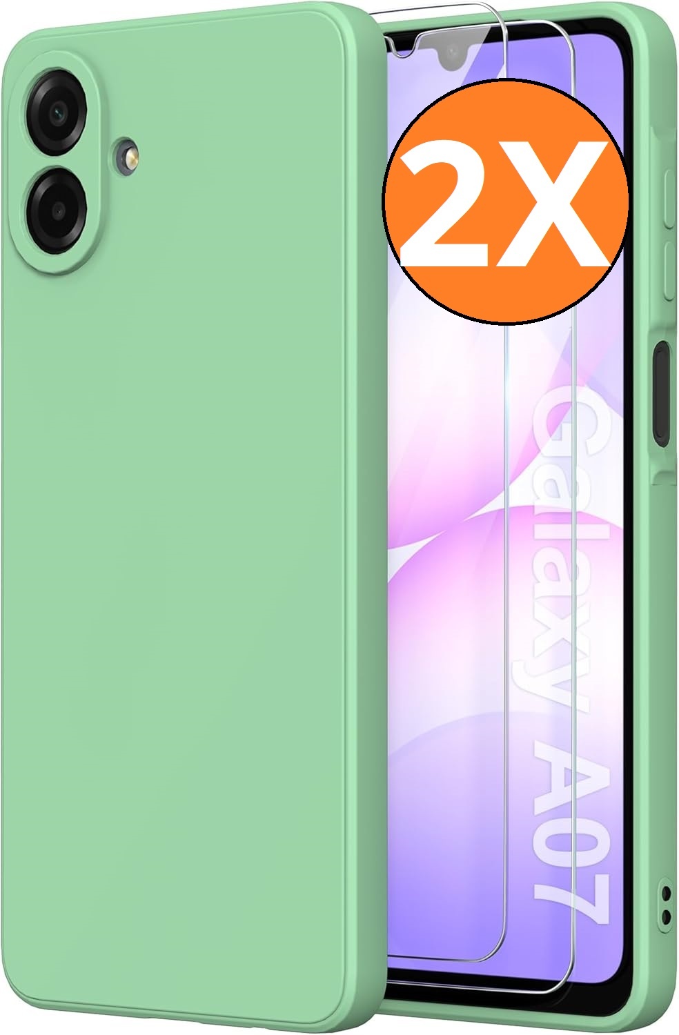 Hoesje geschikt voor Samsung Galaxy A07 5G Hoesje siliconen Mint Groen zacht siliconen hoesje TPU - met Samsung A07 Screenprotector - 2 stuks
