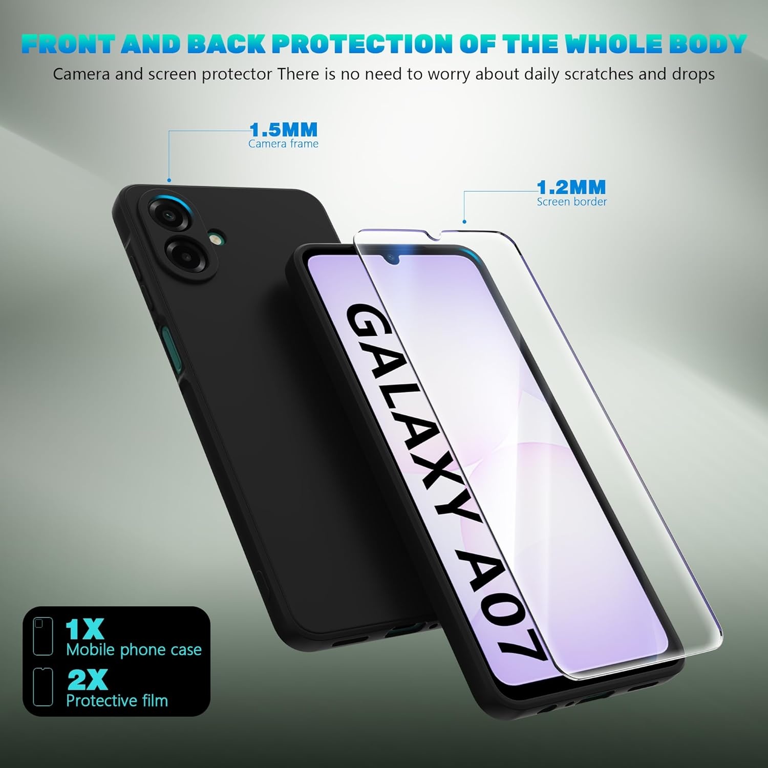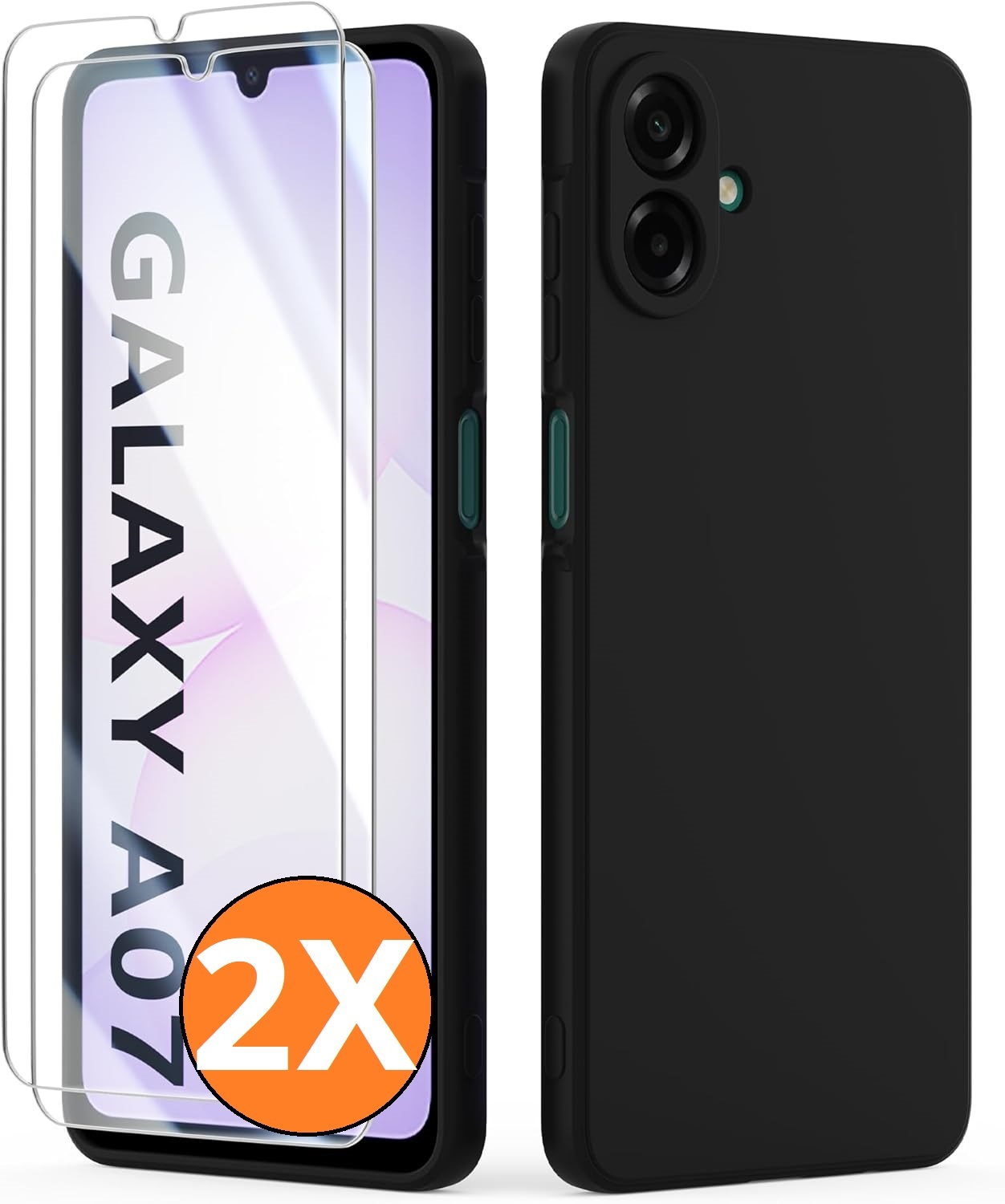 Hoesje geschikt voor Samsung Galaxy A07 5G Hoesje siliconen Zwart zacht siliconen hoesje TPU - met Samsung A07 Screenprotector - 2 stuks