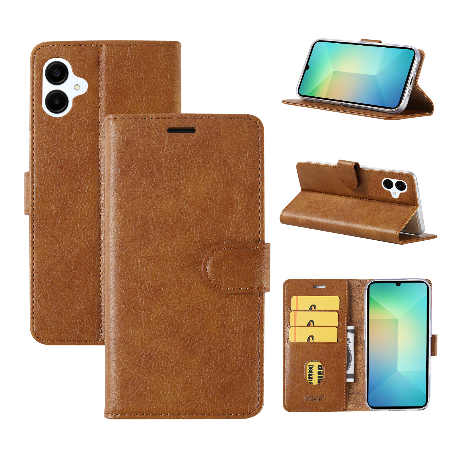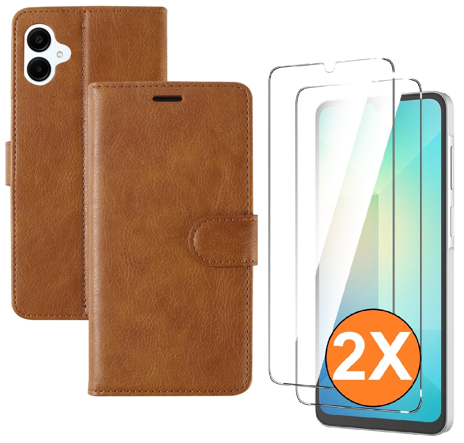 Hoesje geschikt voor Samsung Galaxy A07 hoesje Bruin pasjeshouder telefoon hoes - Met screenprotector tempered glass voor Galaxy A07 4G / 5G - 2x