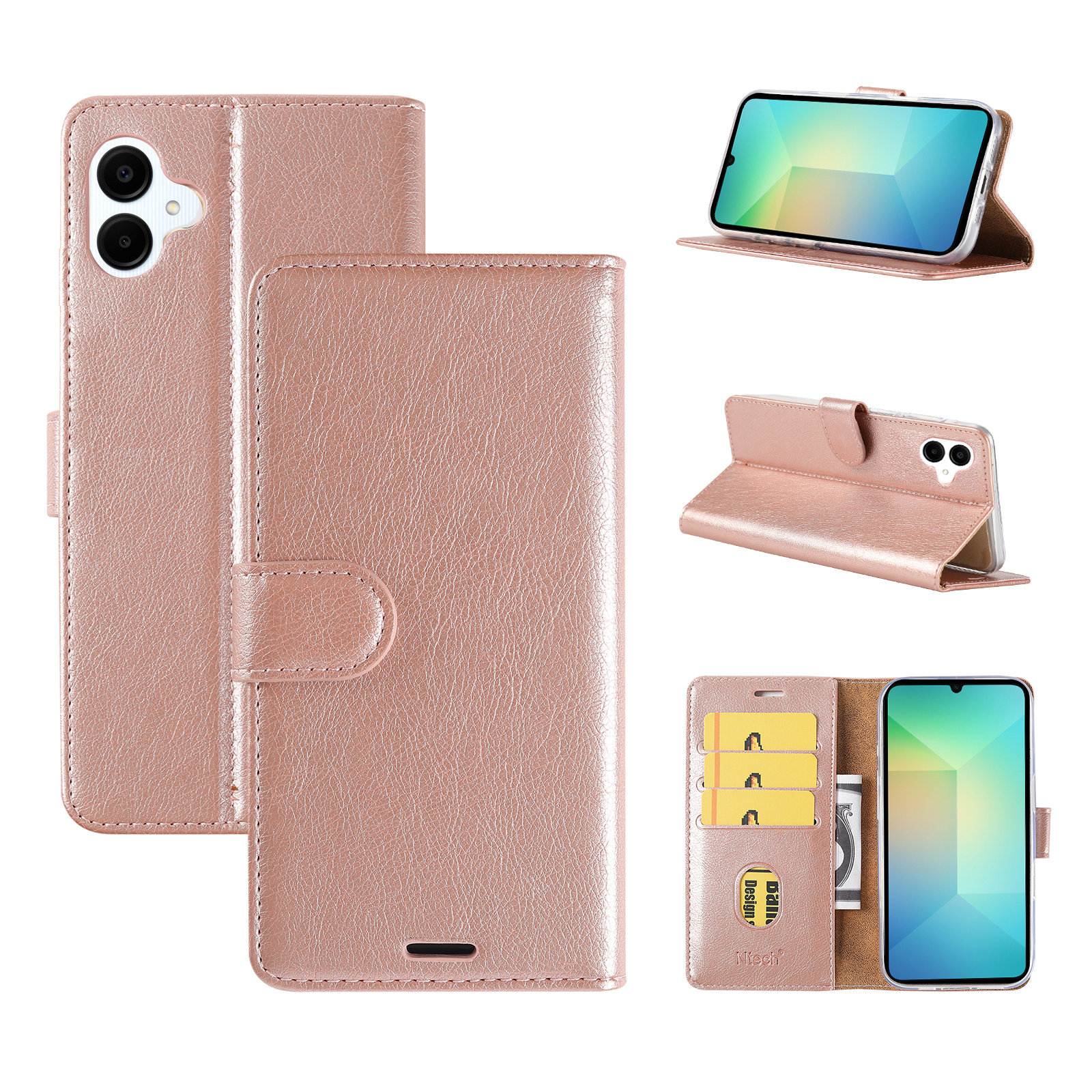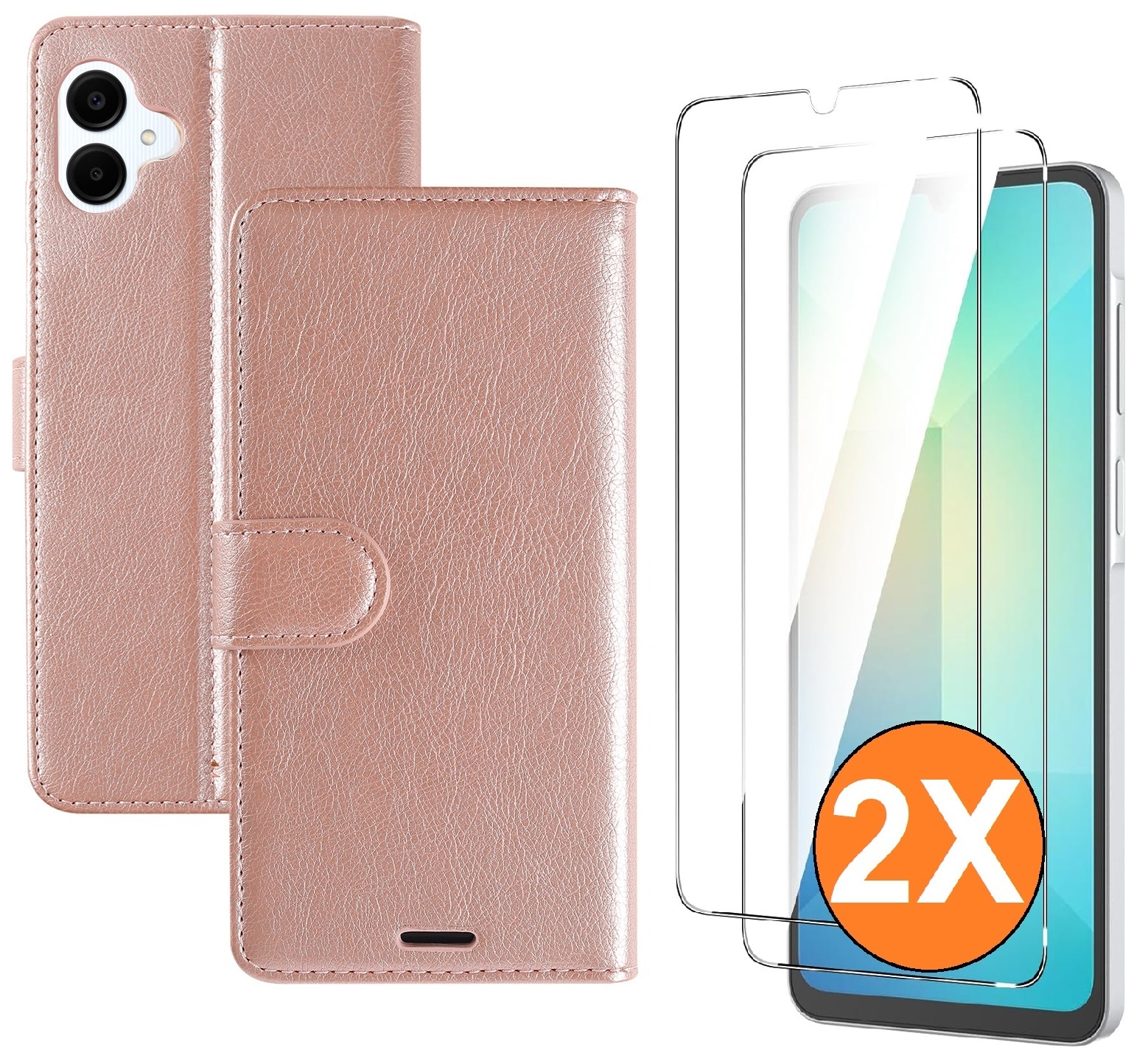 Hoesje geschikt voor Samsung Galaxy A07 hoesje Rose Goud pasjeshouder telefoon hoes - Met screenprotector tempered glass voor Galaxy A07 4G / 5G - 2x