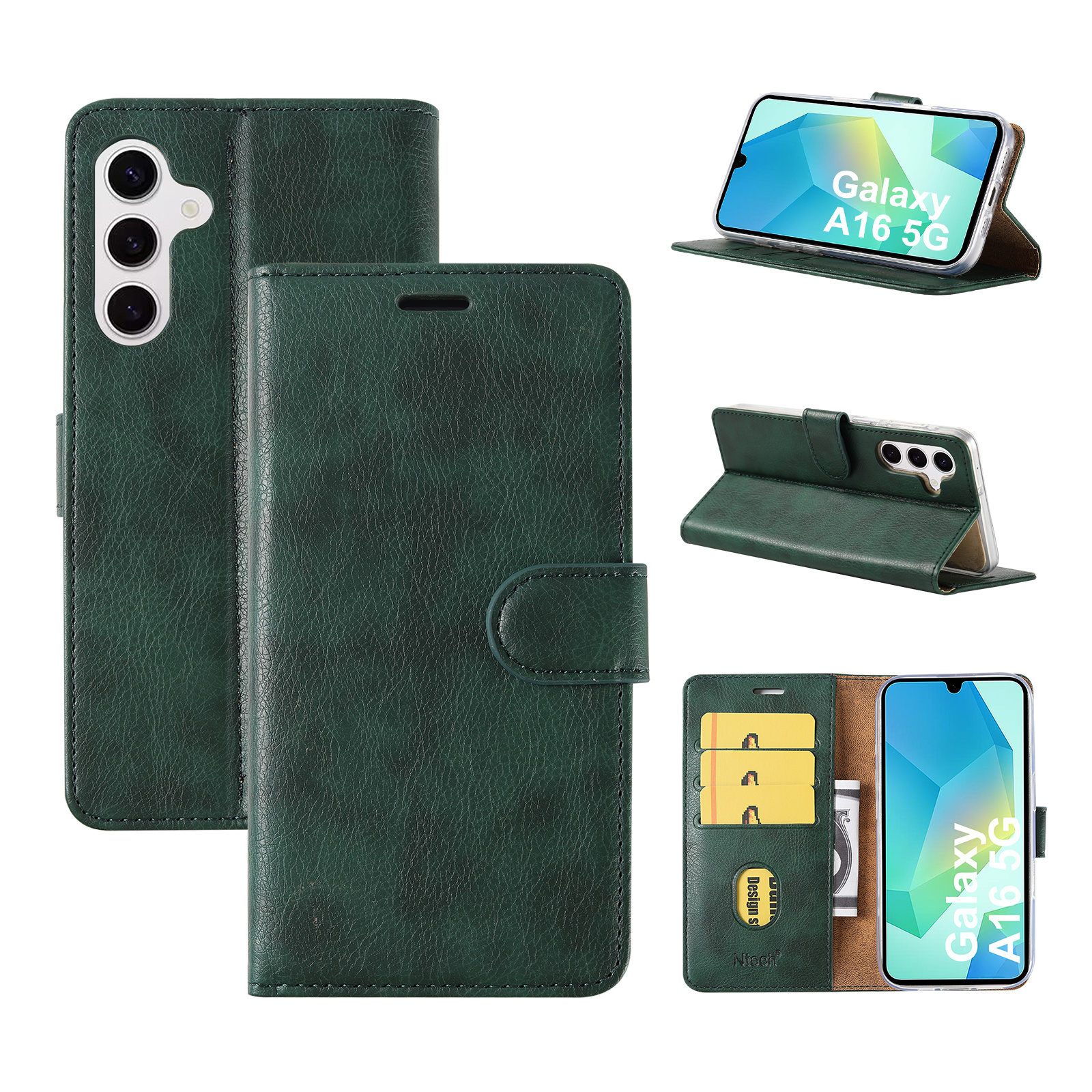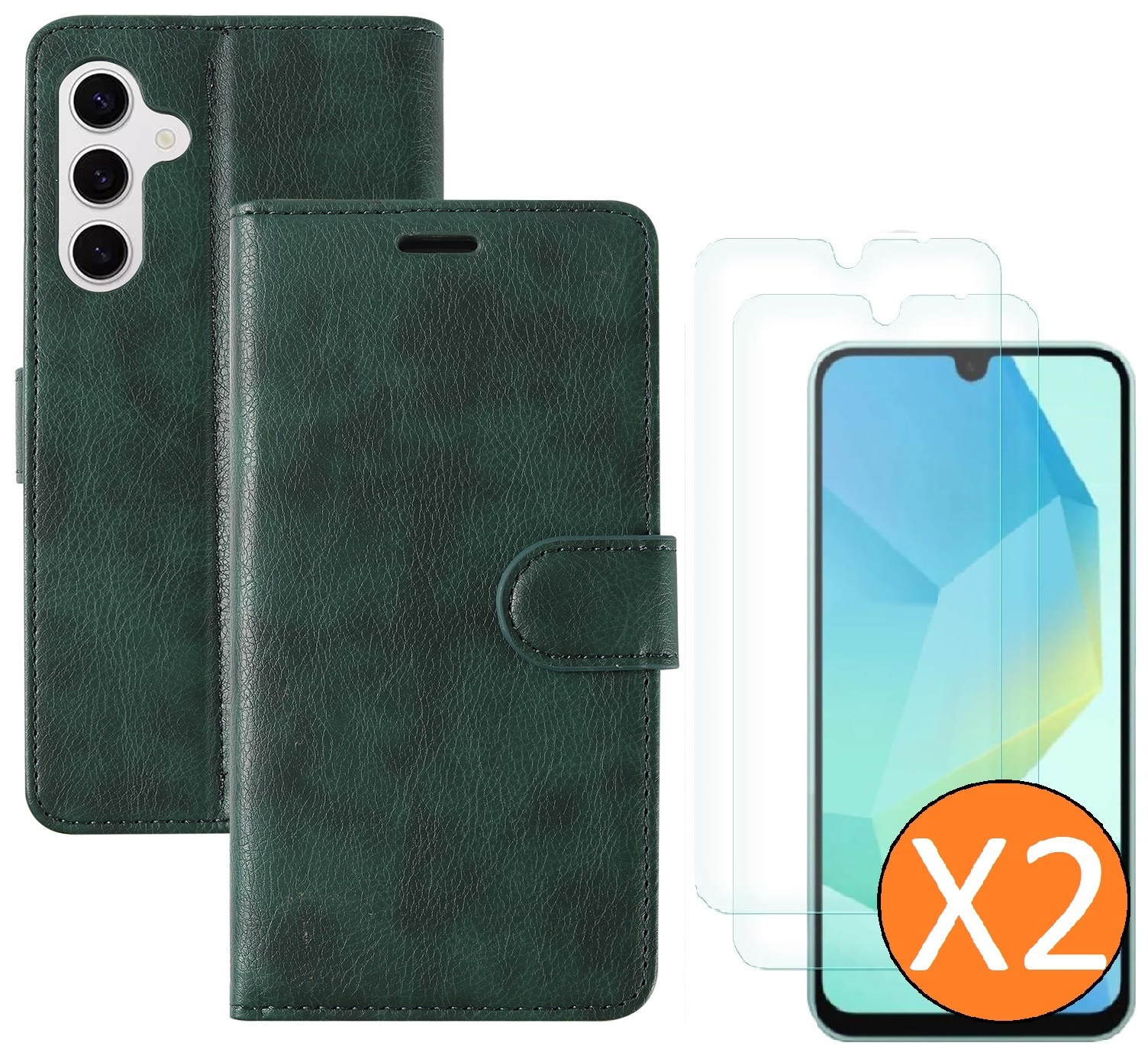 Hoesje geschikt voor Samsung Galaxy A16 4G / 5G hoesje Groen pasjeshouder telefoon hoes - Met screenprotector tempered glass voor Galaxy A16 4G / 5G - 2x