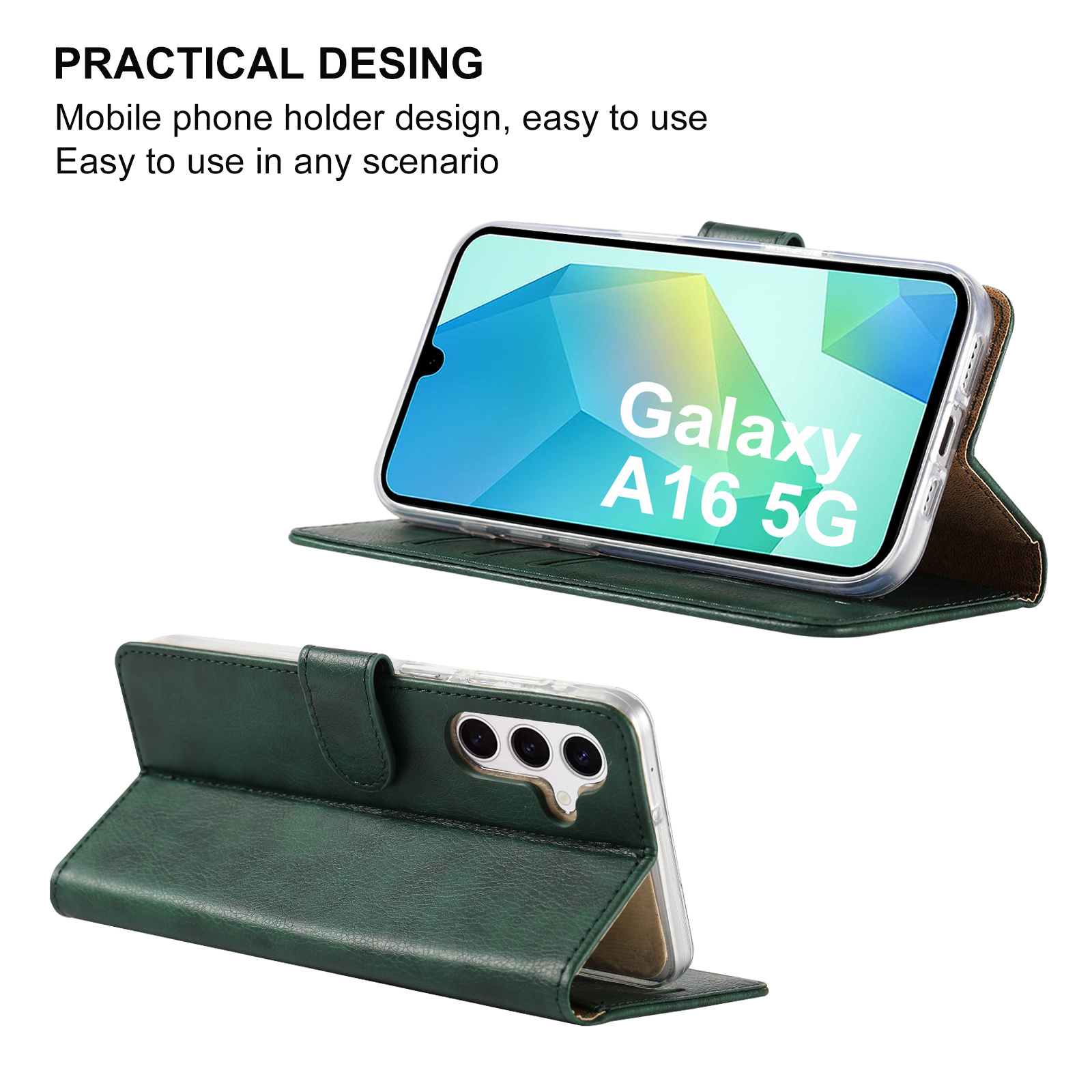 Dit boek hoesje geschikt voor Samsung Galaxy A16 5G maakt het mogelijk om jouw toestel in horizontale stand neer te leggen om bijvoorbeeld een filmpje te kunnen kijken. Doordat er openingen aan de voorzijde in dit boek hoesje zitten, kan je met het Samsung Galaxy A16 5G hoesje gesloten bellen als je het gesprek hebt aangenomen.
