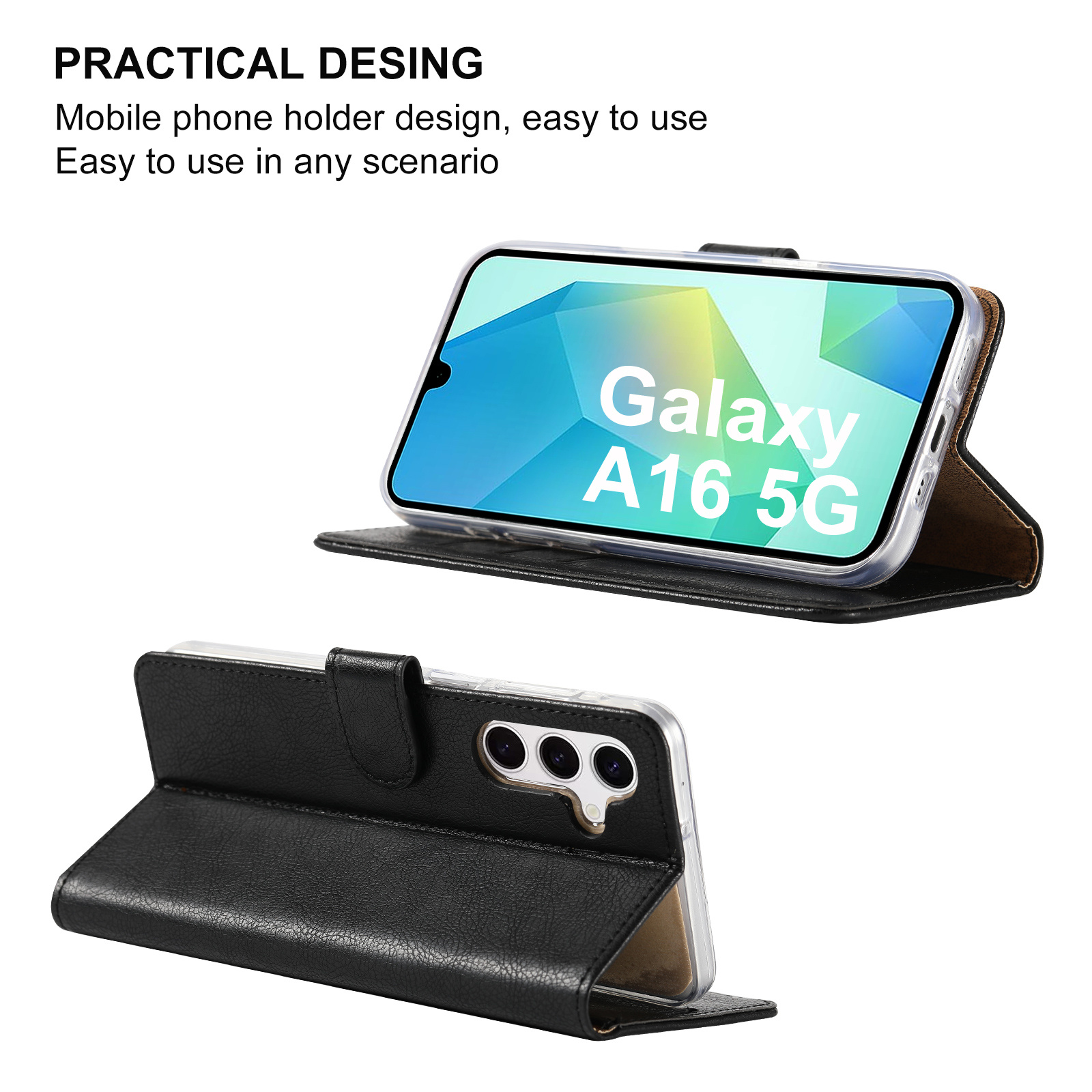 Hoesje geschikt voor Samsung Galaxy A16 4G / 5G hoesje Zwart pasjeshouder telefoon hoes - Met screenprotector tempered glass voor Galaxy A16 4G / 5G - 2x