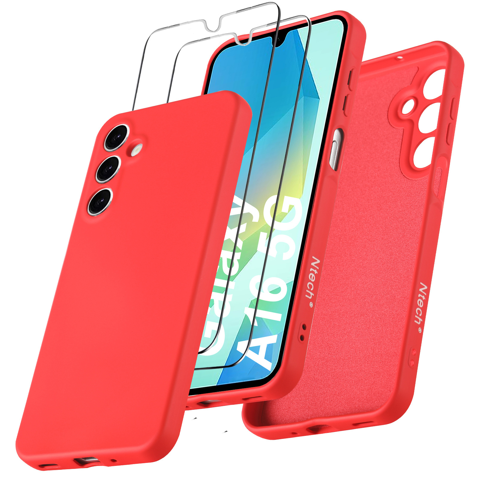 Hoesje geschikt voor Samsung Galaxy A16 4G / 5G Hoesje siliconen Rood zacht siliconen hoesje TPU - met Samsung A16 4G / 5G Screenprotector - 2 stuks