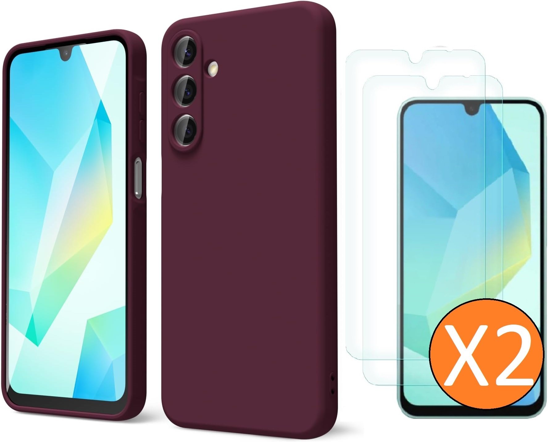 Hoesje geschikt voor Samsung Galaxy A16 4G / 5G Hoesje siliconen Wine Rood zacht siliconen hoesje TPU - met Samsung A16 4G / 5G Screenprotector - 2 stuks