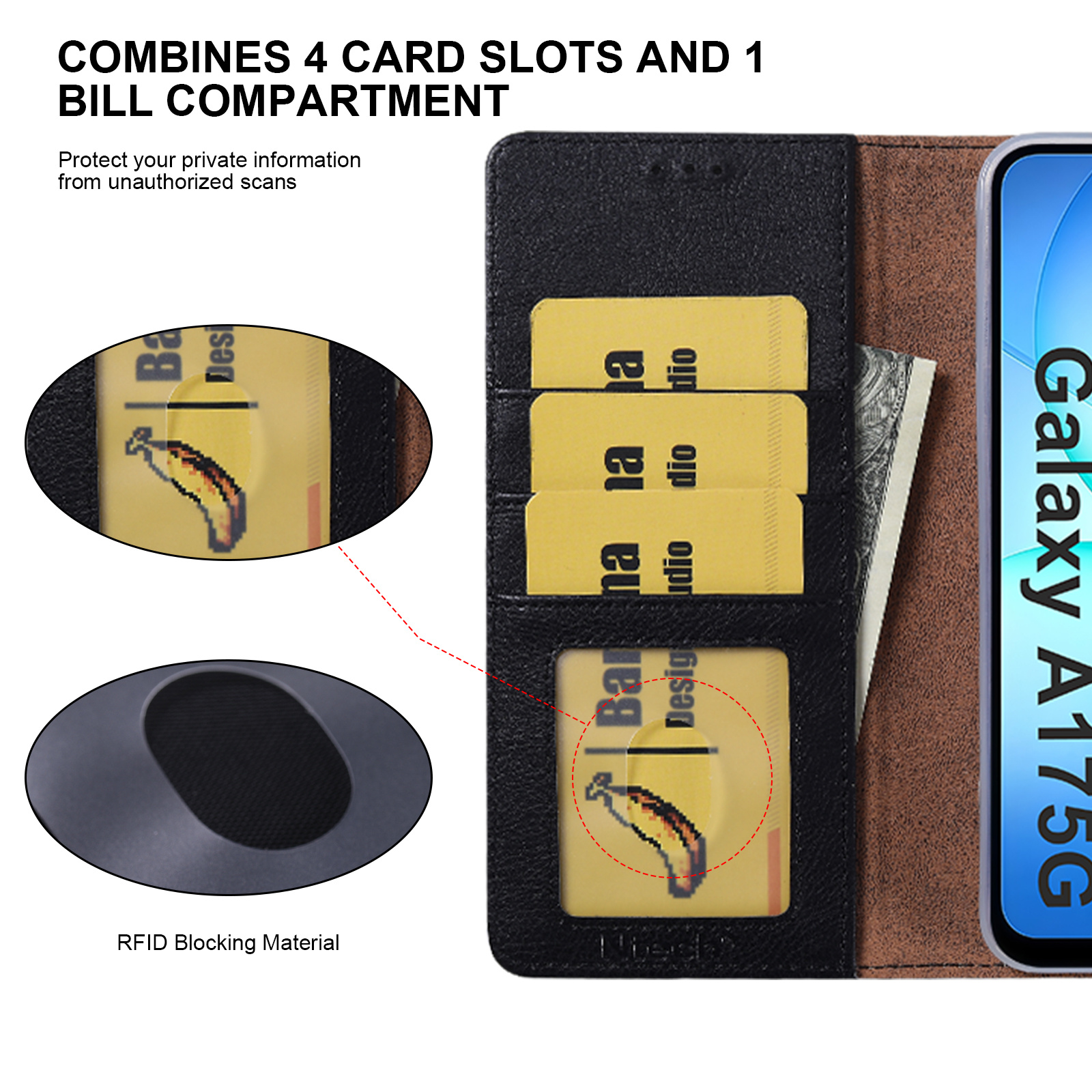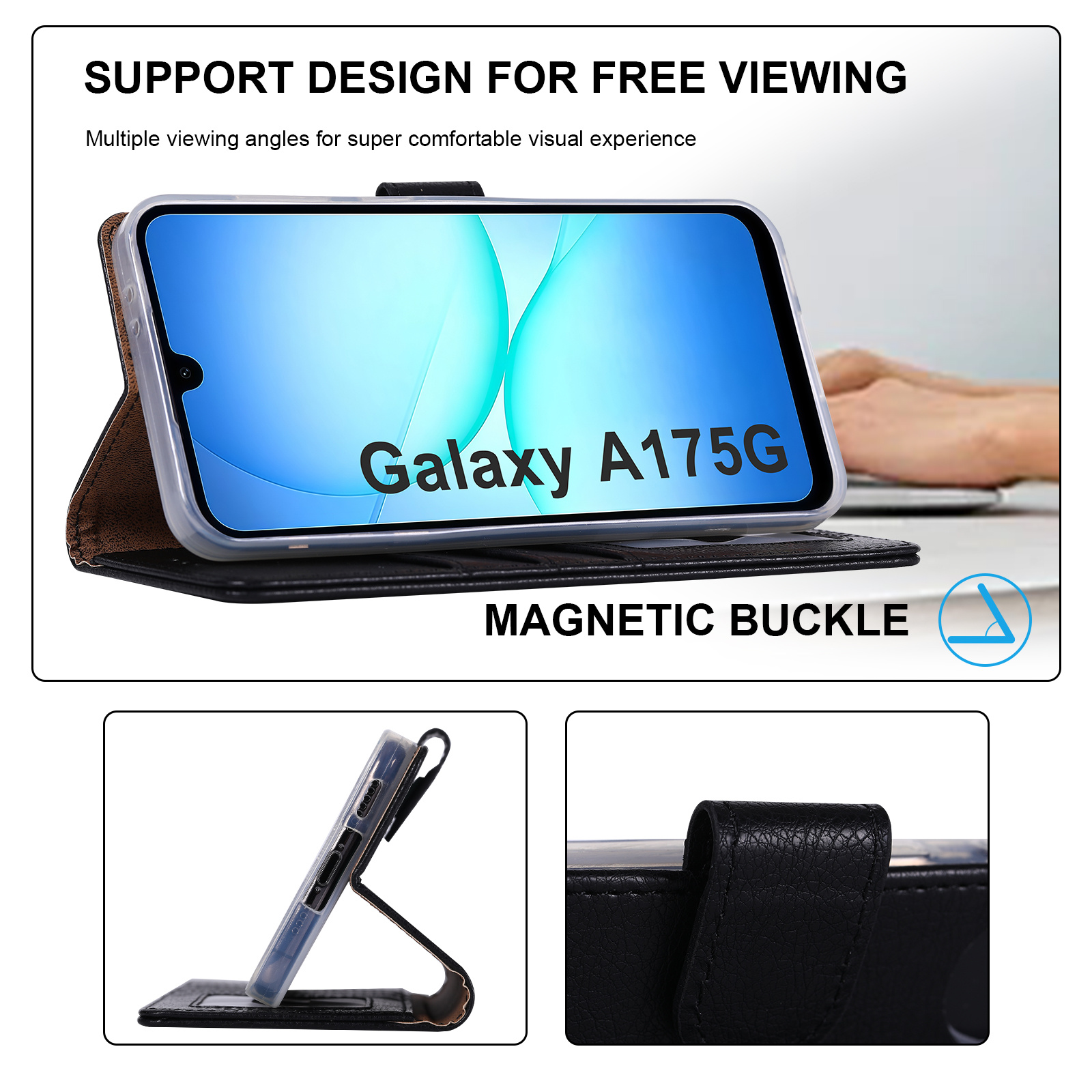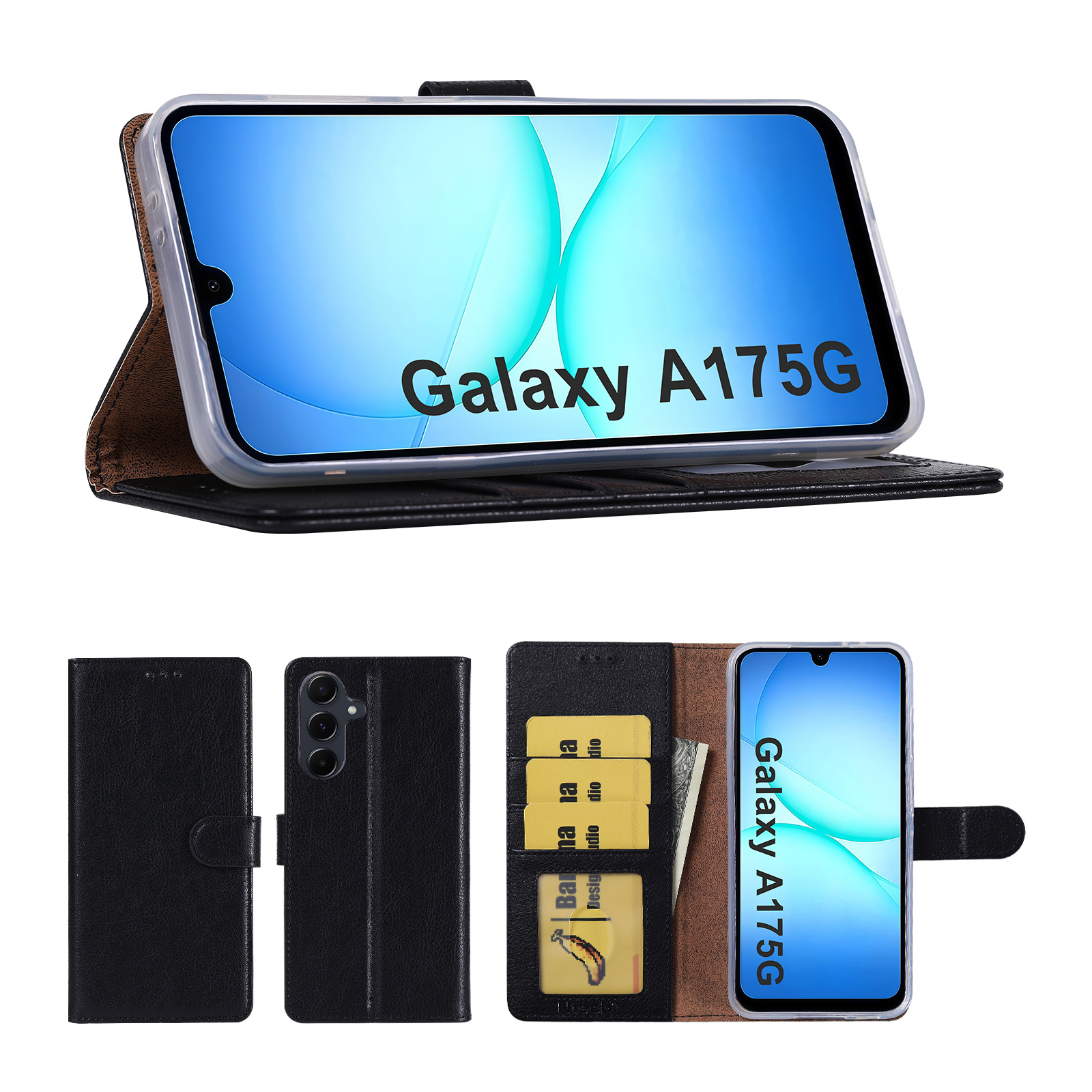 Hoesje geschikt voor Samsung Galaxy A17 5G hoesje Zwart pasjeshouder telefoon hoes - Met screenprotector tempered glass voor Galaxy A17 5G - 2x
