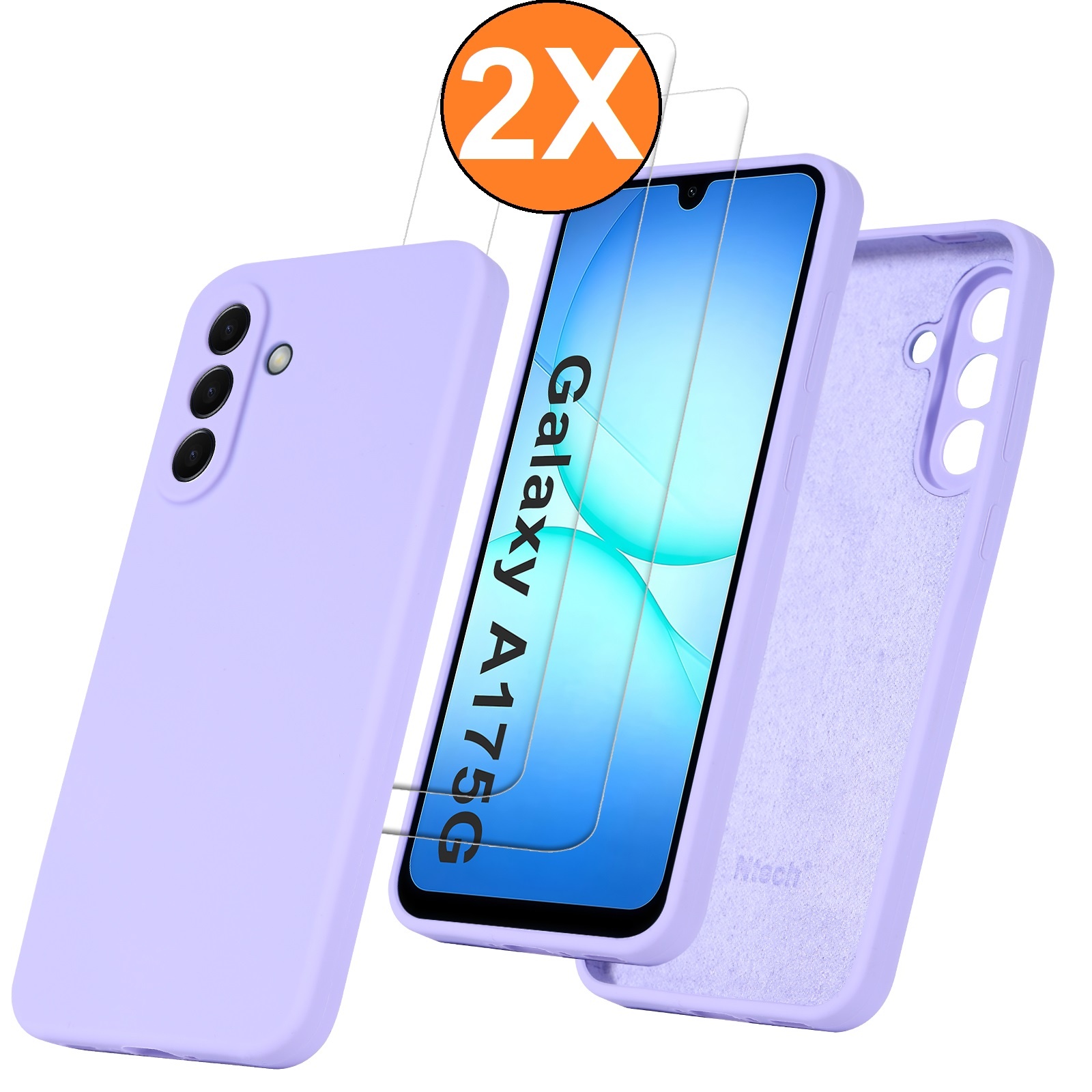 Hoesje geschikt voor Samsung Galaxy A17 5G Hoesje siliconen Lila zacht siliconen hoesje TPU - met Samsung A17 5G Screenprotector - 2 stuks