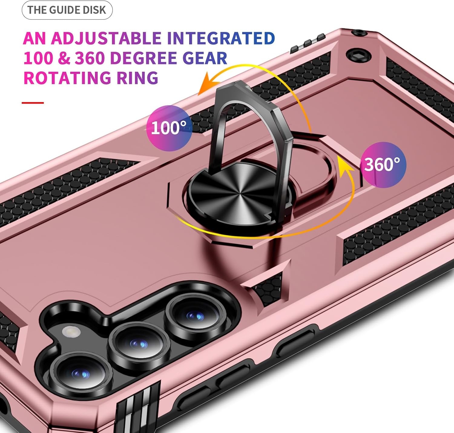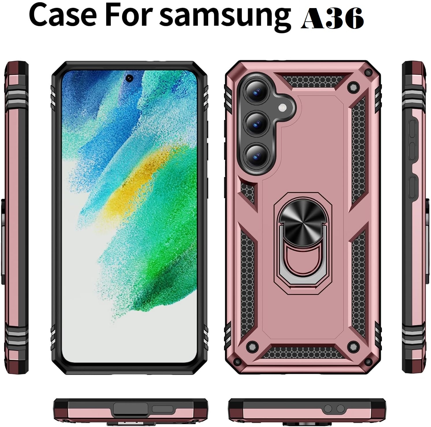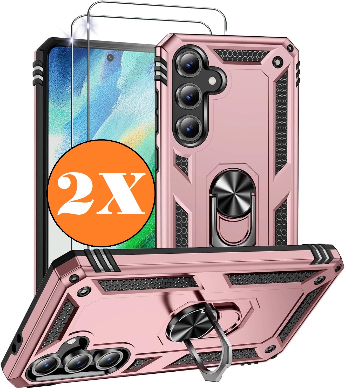 Hoesje Geschikt voor Samsung Galaxy A36 5G Hoesje Rose Goud Anti-Shock Hybrid Armor hoesje Met Draaibare Ring Houder - Samsung A36 Screenprotector 2 pack