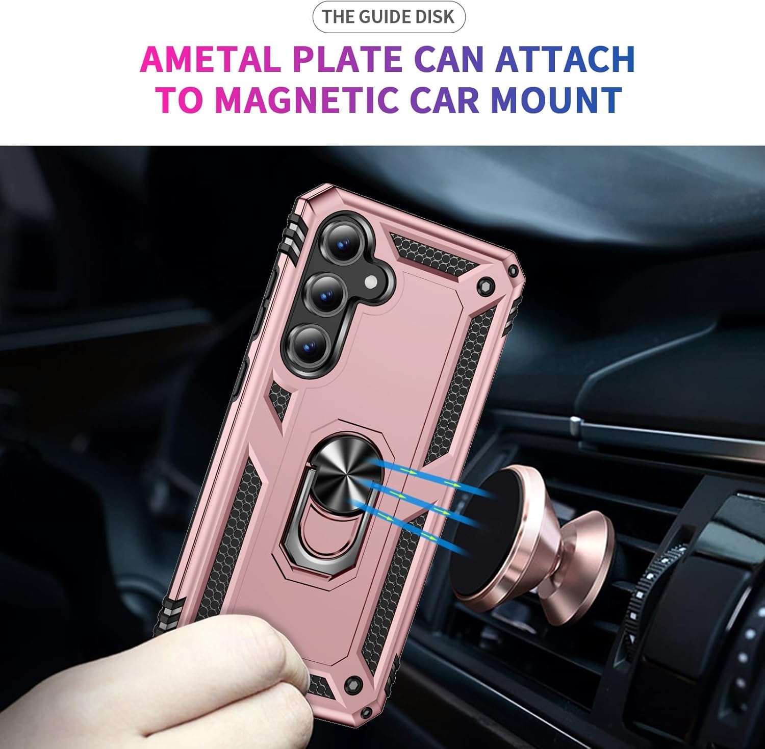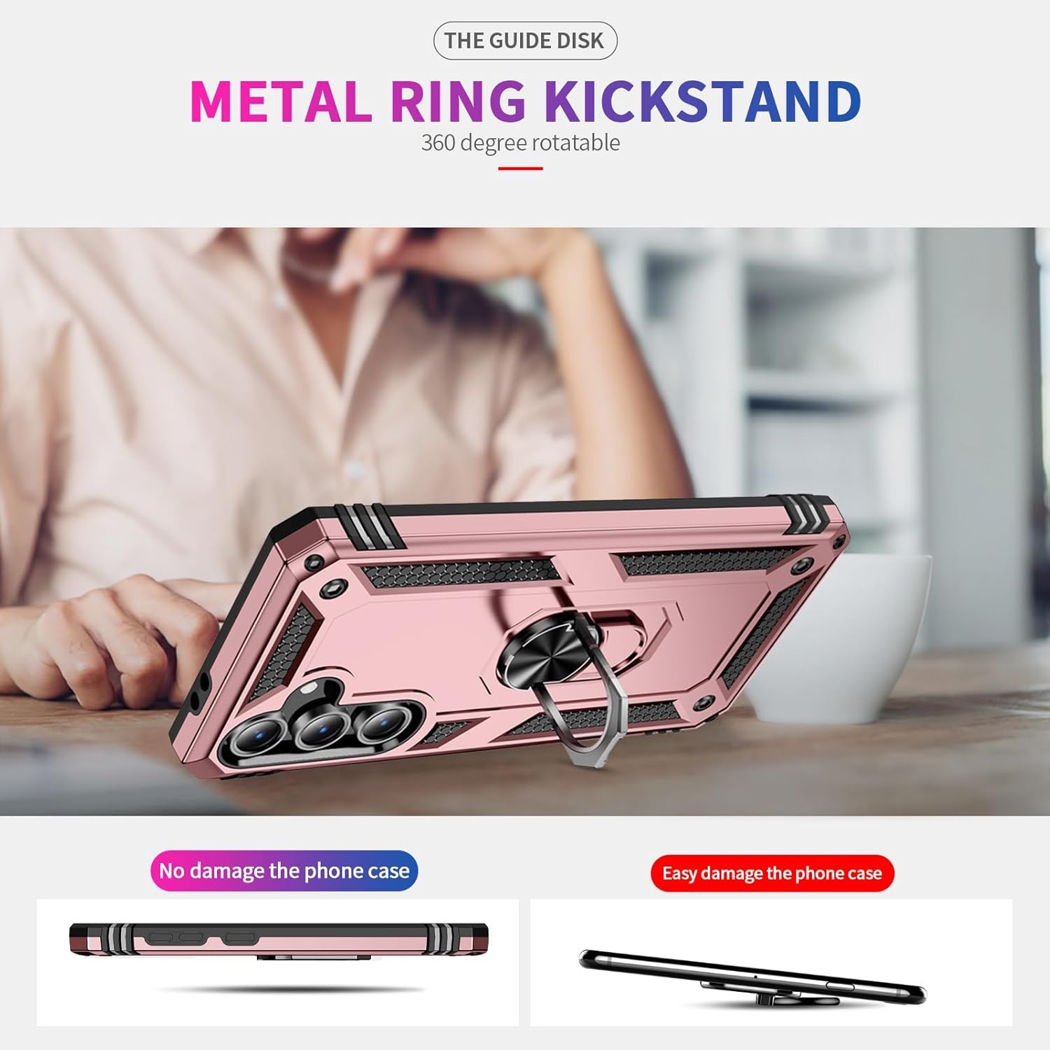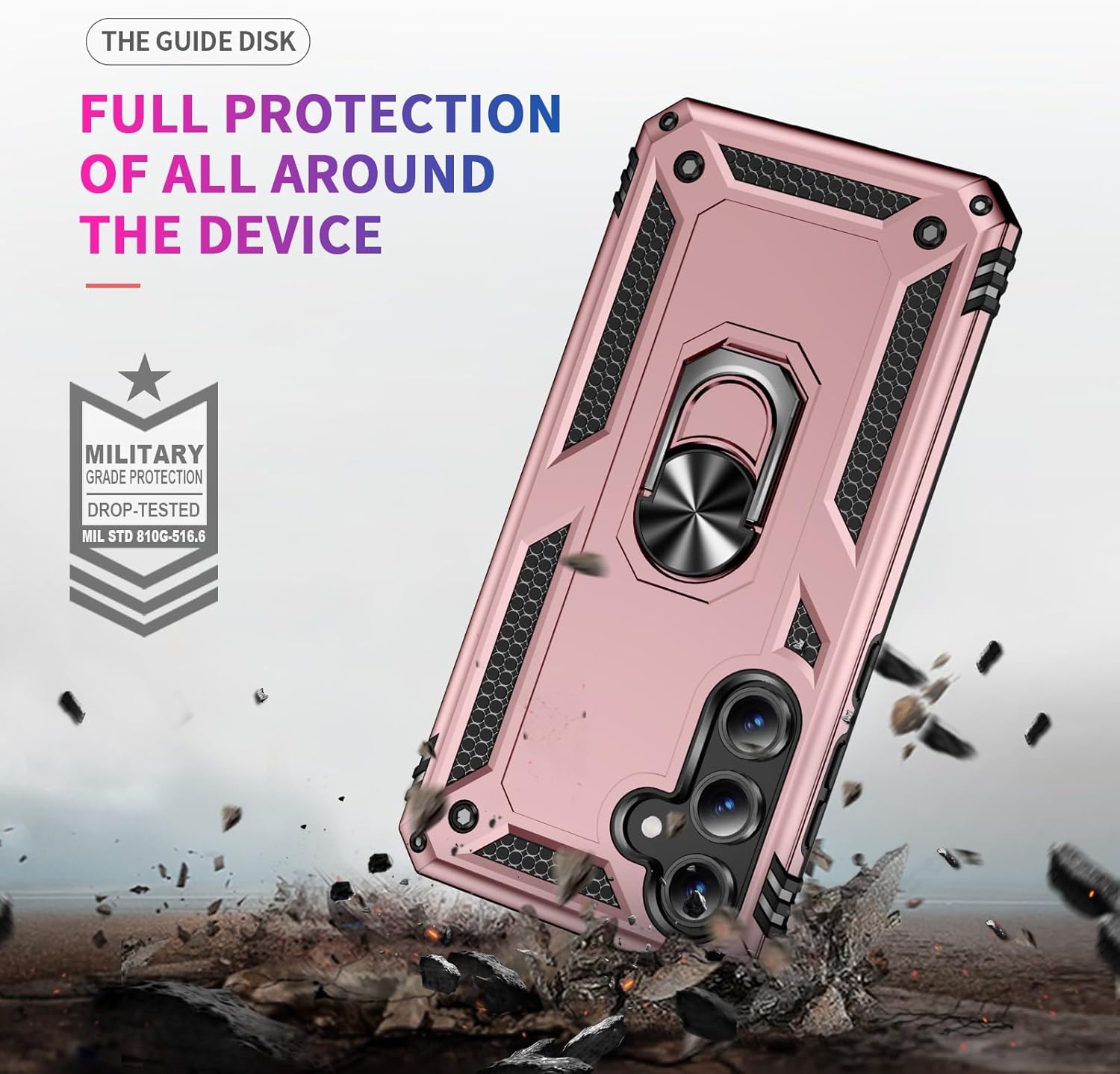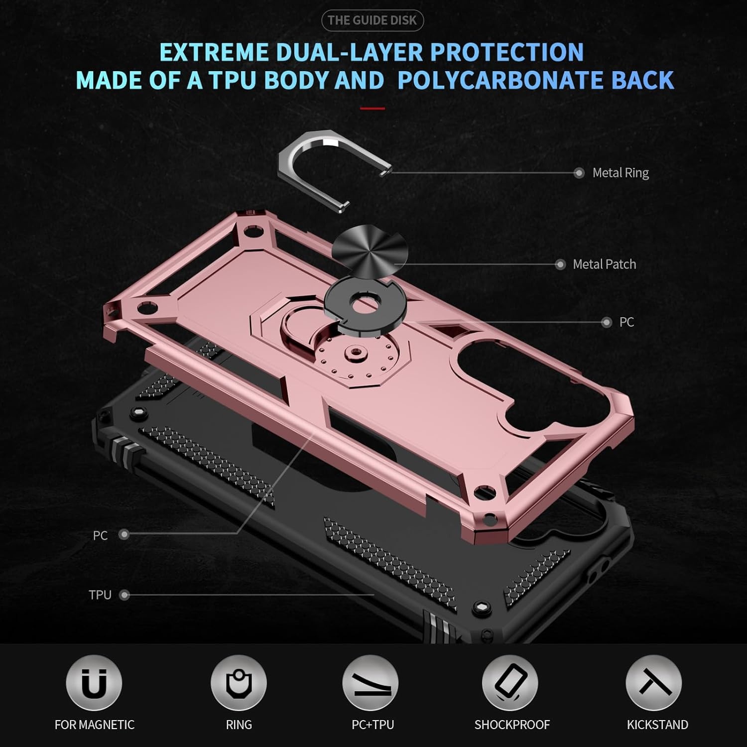 Hoesje Geschikt voor Samsung Galaxy A36 5G Hoesje Rose Goud Anti-Shock Hybrid Armor hoesje Met Draaibare Ring Houder - Samsung A36 Screenprotector 2 pack