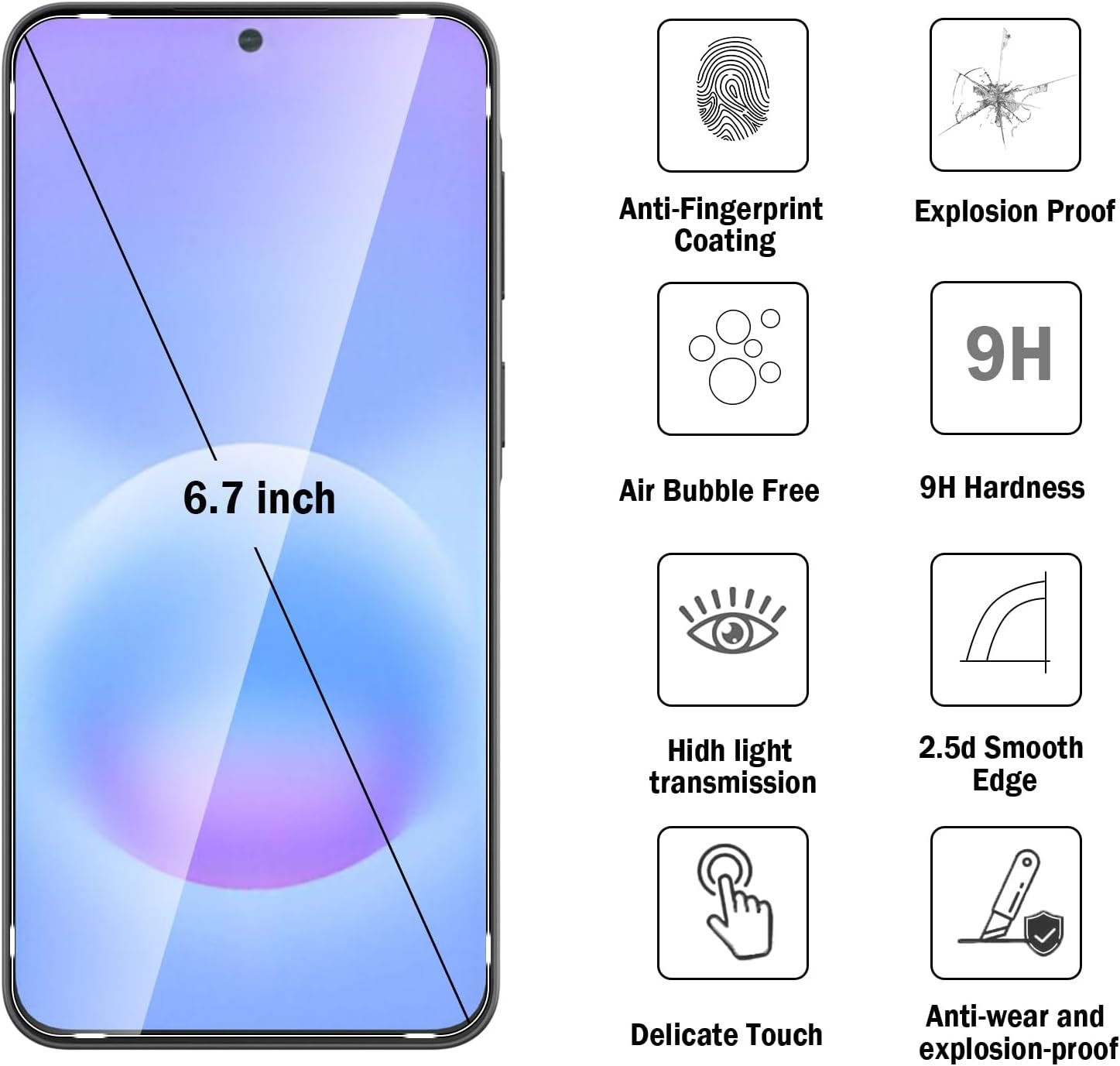 De verpakking bevat twee hoogwaardige screenprotectors die essentiële bescherming bieden voor het display van je Galaxy A36 5G. Hier zijn de belangrijkste voordelen:
