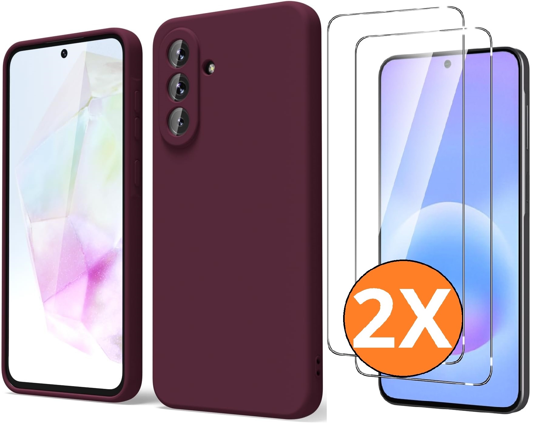 Hoesje geschikt voor Samsung Galaxy A36 5G Hoesje siliconen Wine Rood zacht siliconen hoesje TPU - met Samsung A36 Screenprotector - 2 stuks