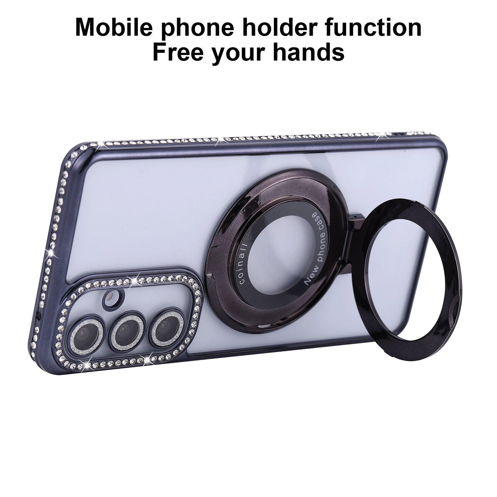 Hoesje Geschikt voor Samsung Galaxy A36 Magsafe hoesje Zwart - Lens beschermer ring Luxury Bling Sparkly Diamond backcover