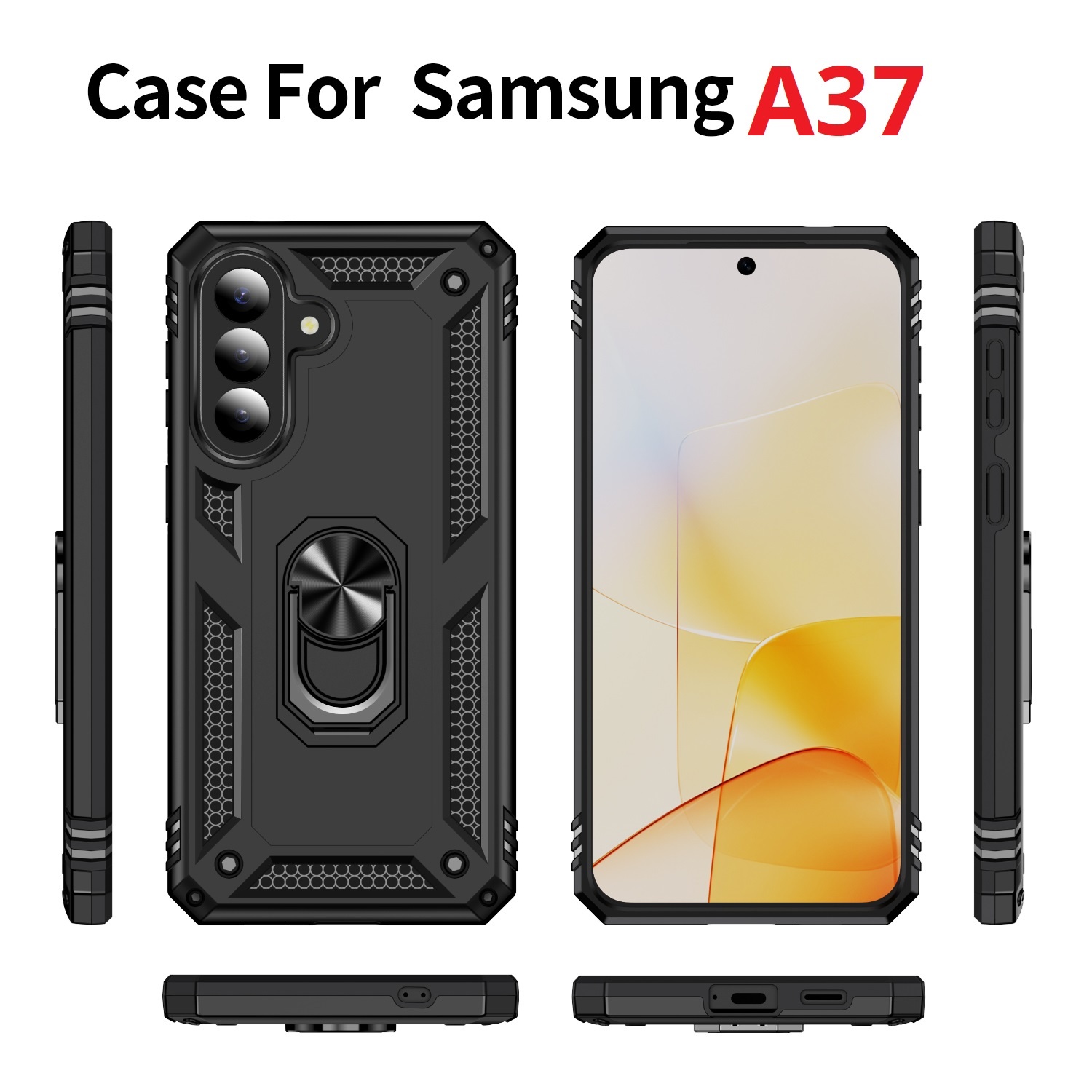 Hoesje Geschikt voor Samsung A37 5G Armor TPU Back Cover Met Metalen Ring houder & standaard. Bescherming tegen stof, stoot & vuil en makkelijk in gebruik. De Samsung Galaxy A37 5G ring houder hoesje kan je op verschillende manieren gebruiken, bijvoorbeeld als een handige standaard om je favoriete filmpjes en video's te bekijken.