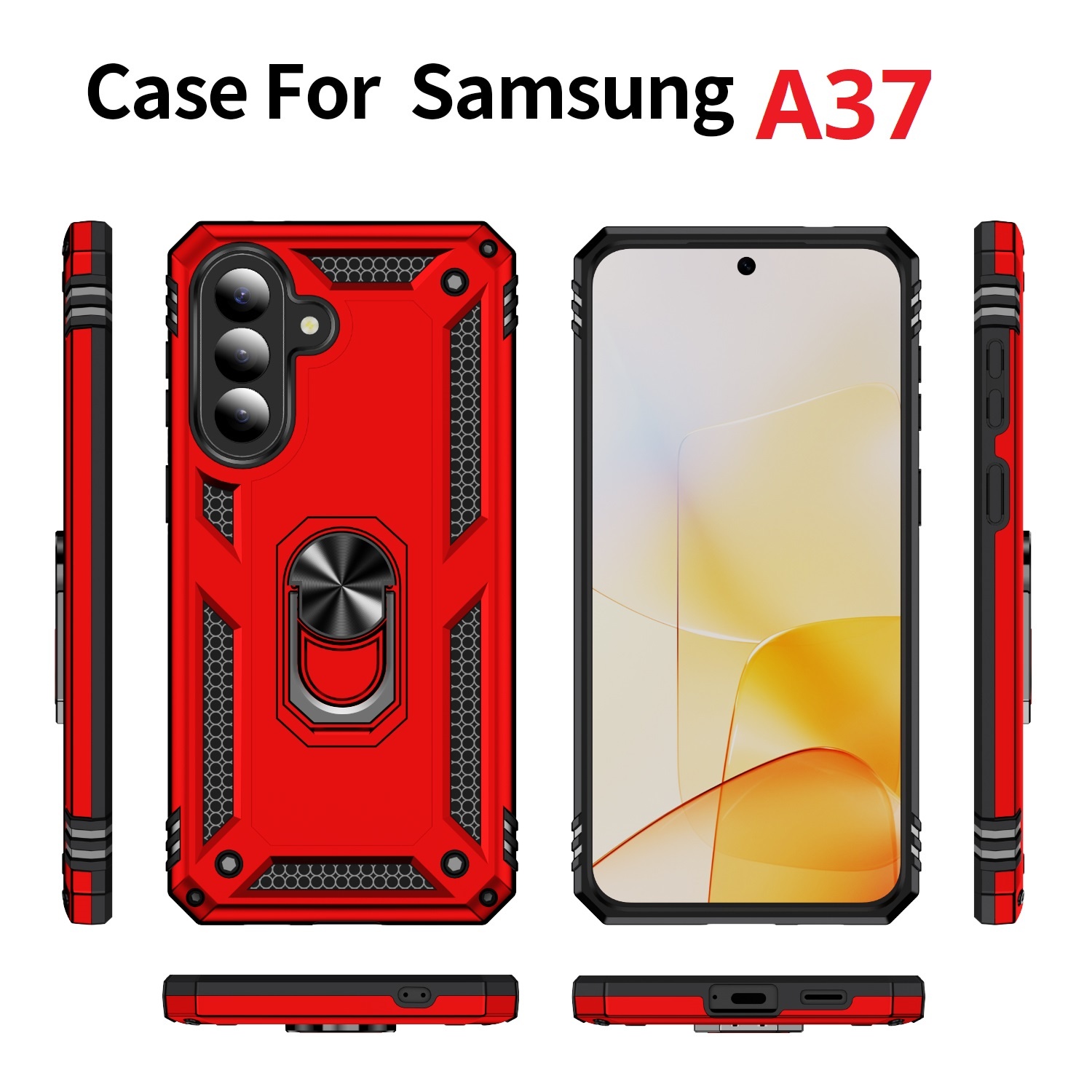Hoesje Geschikt voor Samsung Galaxy A37 5G Hoesje Rood - Anti-Shock Hybrid Armor hoesje Met Draaibare Ring Houder - Samsung A37 Screenprotector 2 pack