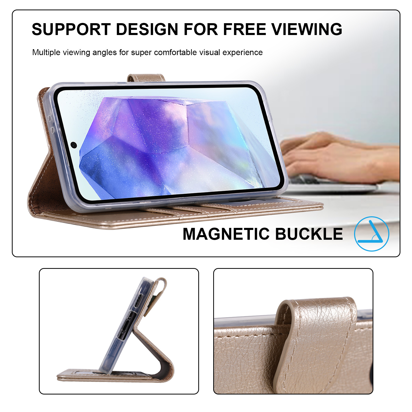 Dit boek hoesje geschikt voor Samsung Galaxy A37 5G maakt het mogelijk om jouw toestel in horizontale stand neer te leggen om bijvoorbeeld een filmpje te kunnen kijken. Doordat er openingen aan de voorzijde in dit boek hoesje zitten, kan je met het Samsung Galaxy A37 5G hoesje gesloten bellen als je het gesprek hebt aangenomen.