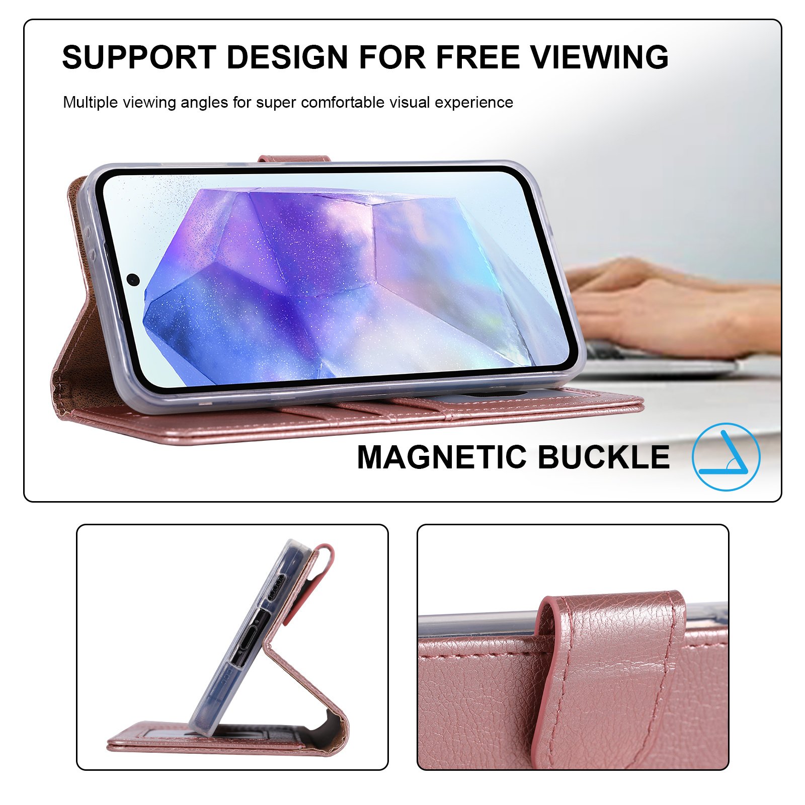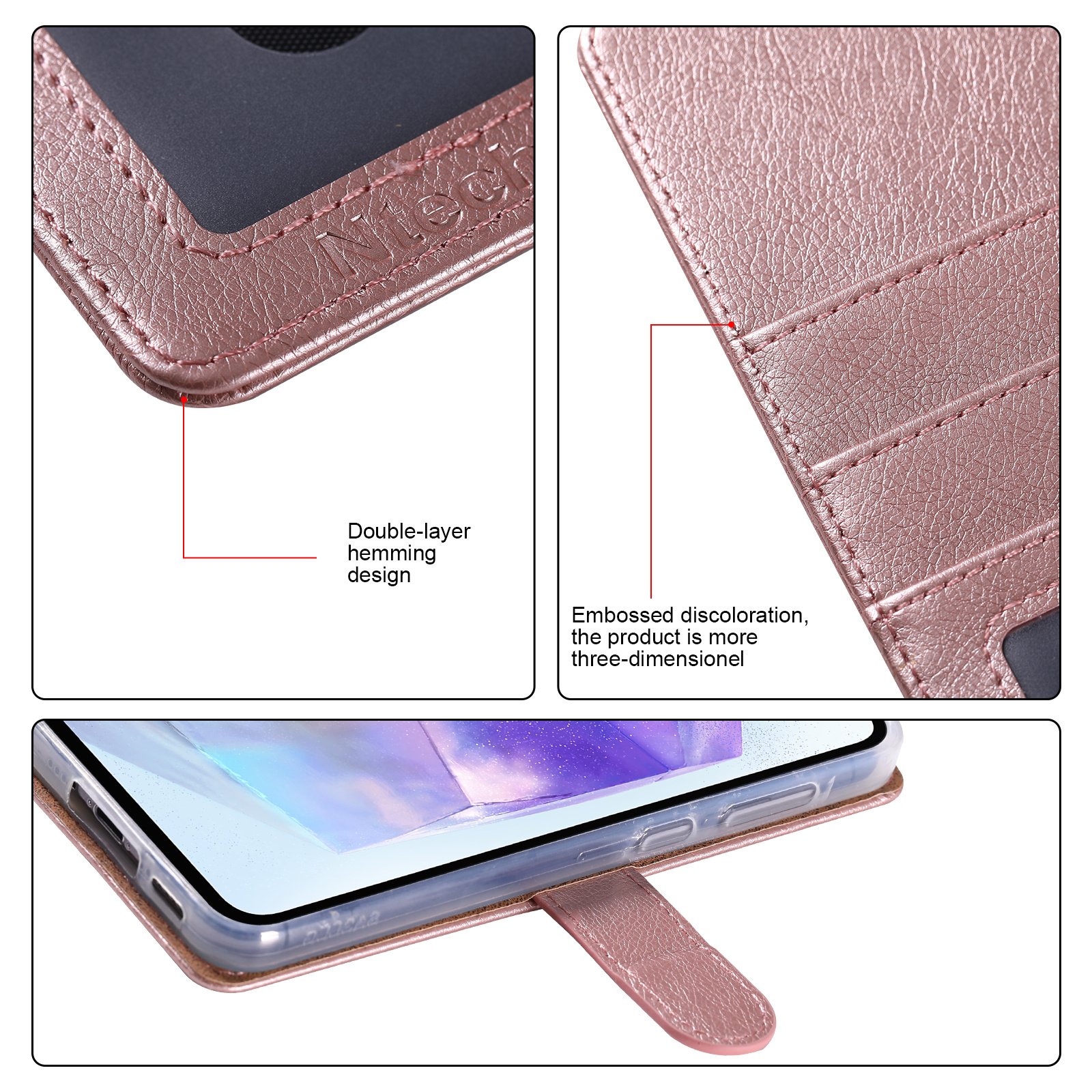 Het hoesje is gemaakt van duurzaam PU-leer en heeft een zachte TPU-binnenkant die je telefoon beschermt tegen krassen, stoten en vuil. De stevige constructie zorgt voor betrouwbare bescherming zonder extra gewicht toe te voegen.