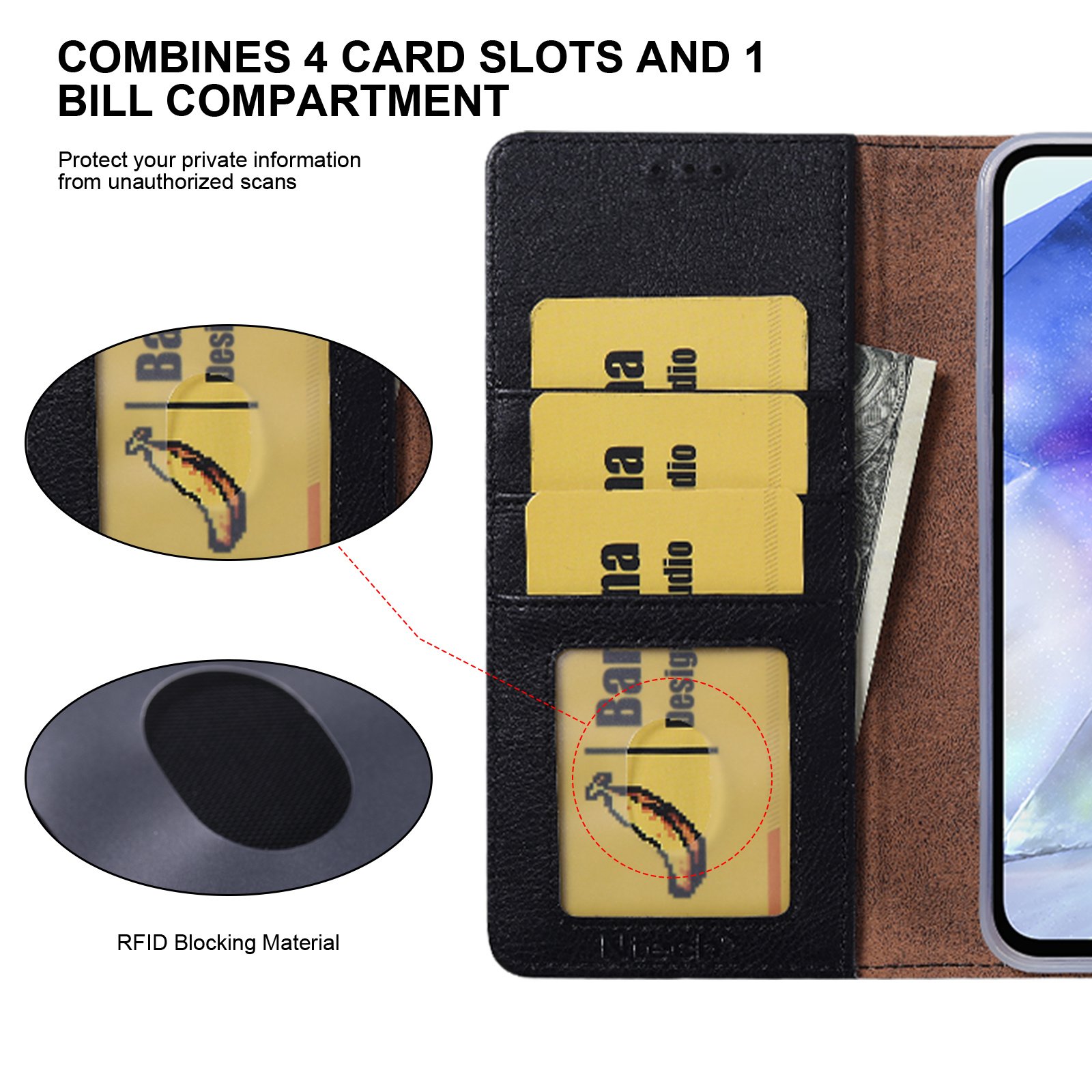 Het hoesje is gemaakt van duurzaam PU-leer en heeft een zachte TPU-binnenkant die je telefoon beschermt tegen krassen, stoten en vuil. De stevige constructie zorgt voor betrouwbare bescherming zonder extra gewicht toe te voegen.