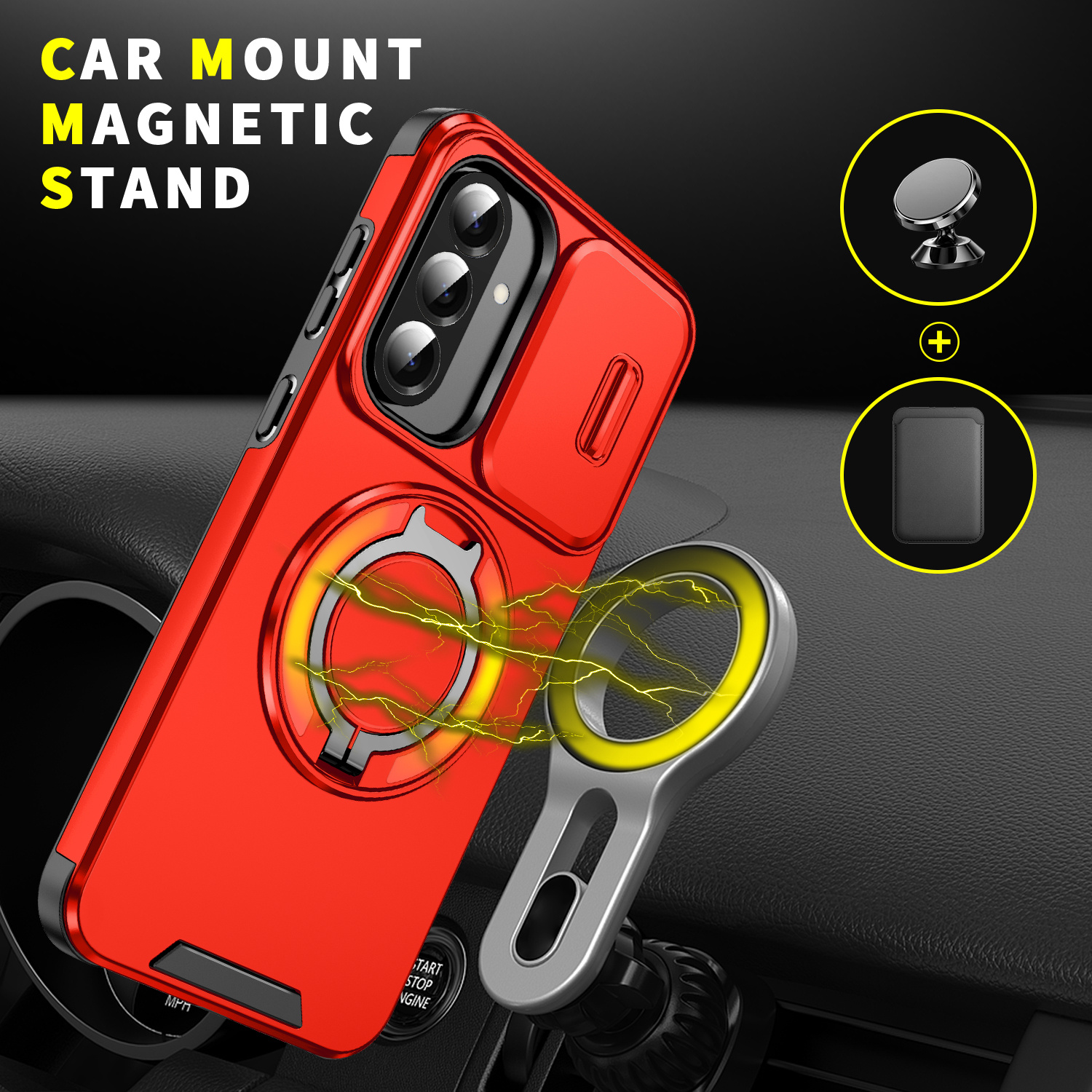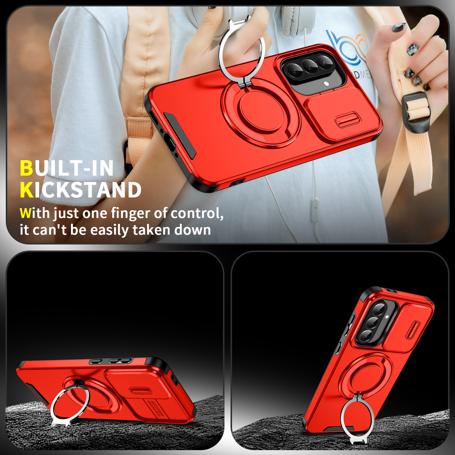 Hoesje Geschikt voor Samsung Galaxy A37 hoesje Rood - Shock Hybrid Armor Hoes met Kickstand Ring en Camera Bescherming - Geschikt voor MagSafe