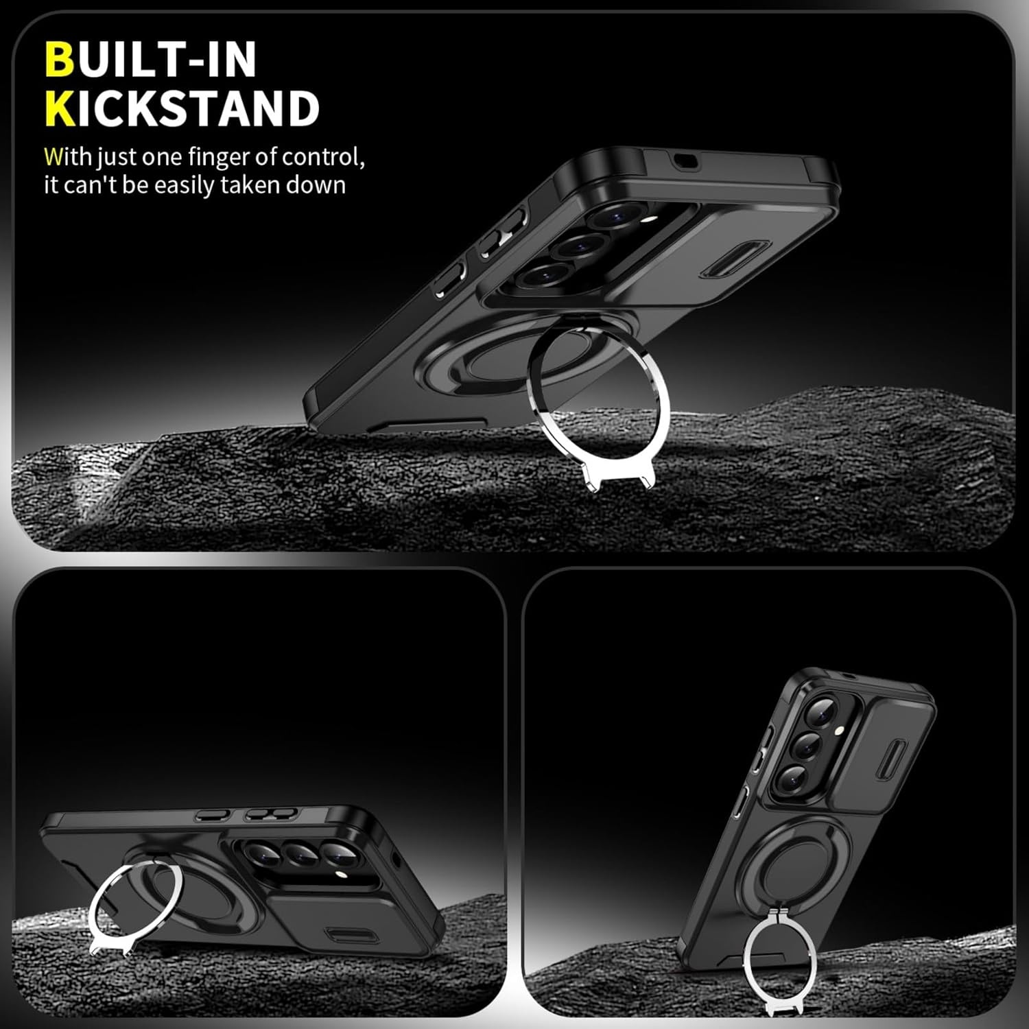 - De geïntegreerde roterende steun maakt het mogelijk om de kijkhoek van je telefoon gemakkelijk aan te passen voor handsfree weergave, of je nu video's kijkt, video belt of leest.