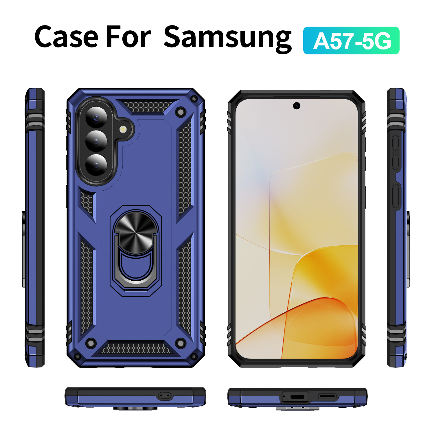Hoesje Geschikt voor Samsung A57 5G Armor TPU Back Cover Met Metalen Ring houder & standaard. Bescherming tegen stof, stoot & vuil en makkelijk in gebruik. De Samsung Galaxy A57 5G ring houder hoesje kan je op verschillende manieren gebruiken, bijvoorbeeld als een handige standaard om je favoriete filmpjes en video's te bekijken.