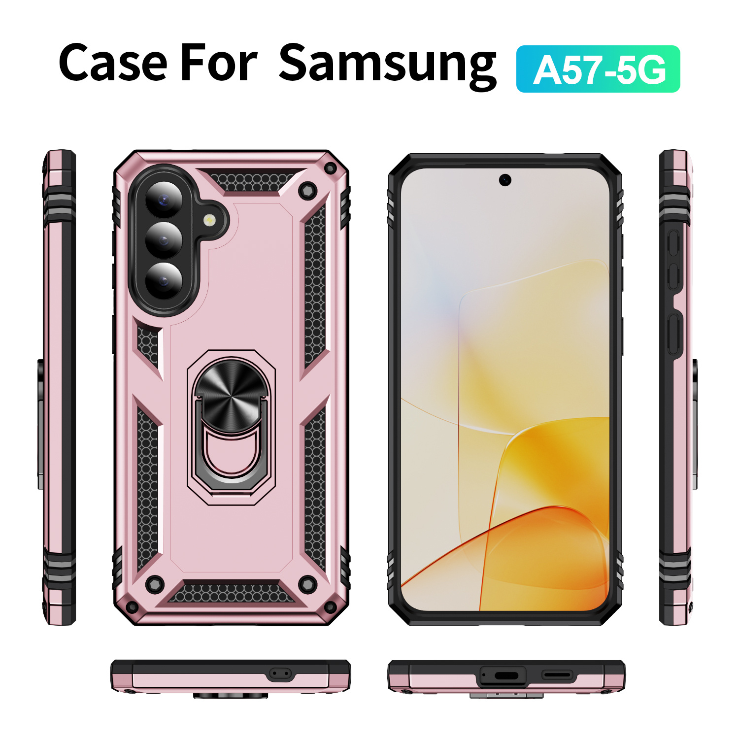 Hoesje Geschikt voor Samsung Galaxy A57 4G / 5G Hoesje Rose Goud Anti-Shock Hybrid Armor hoesje Met Draaibare Ring Houder - Samsung A57 Screenprotector 2 pack