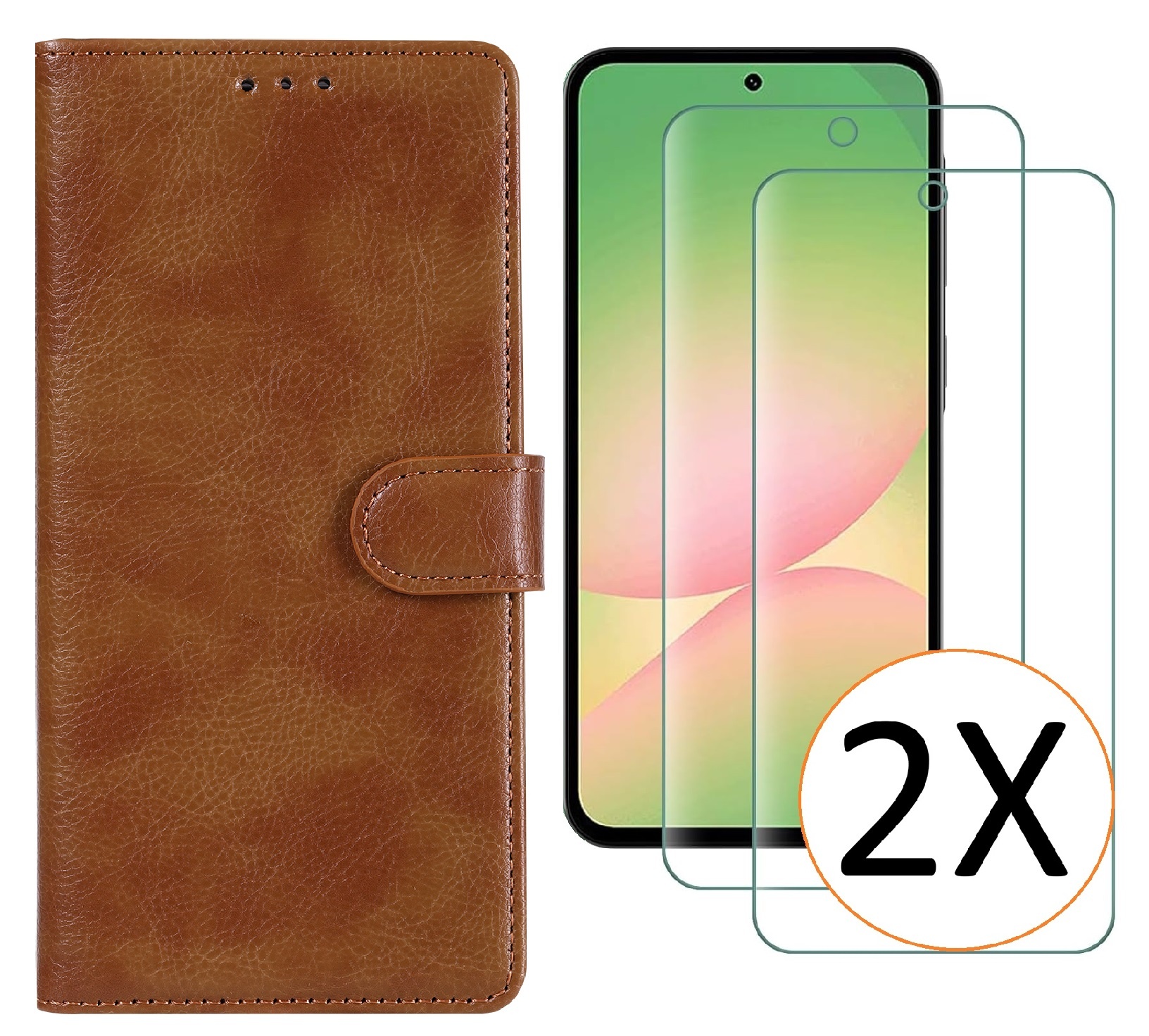 Hoesje geschikt voor Samsung Galaxy A57 5G hoesje Bruin pasjeshouder telefoon hoes - Met screenprotector tempered glass voor Galaxy A57 5G - 2x